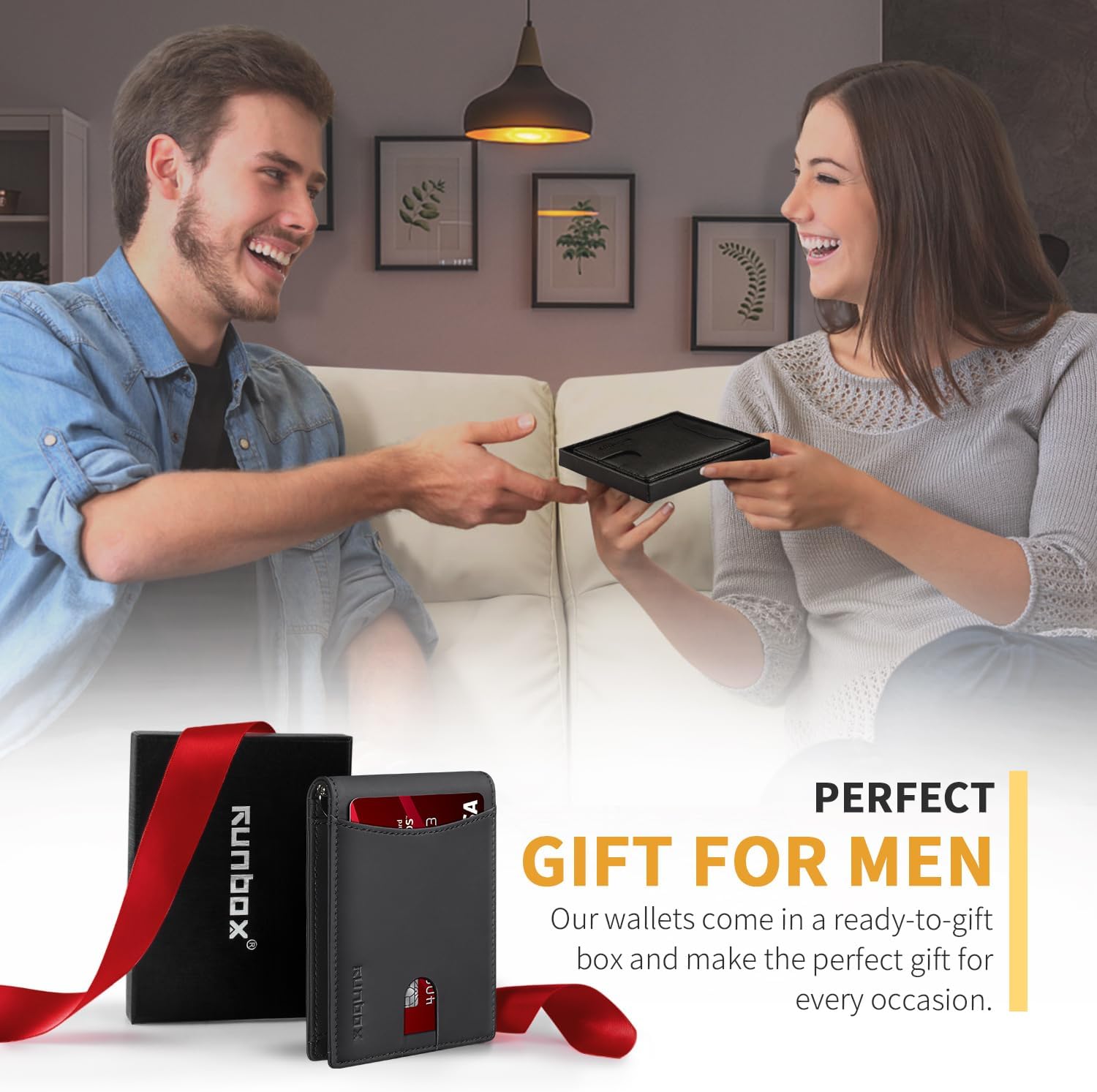 - Perfect Gifts for him: Our minimalist wallets packed with a pretty box, this mens slim wallet is a great present for boyfriend, brother, son, husband, dad, or your male friends on christmas, birthdays, anniversaries, and fathers Day