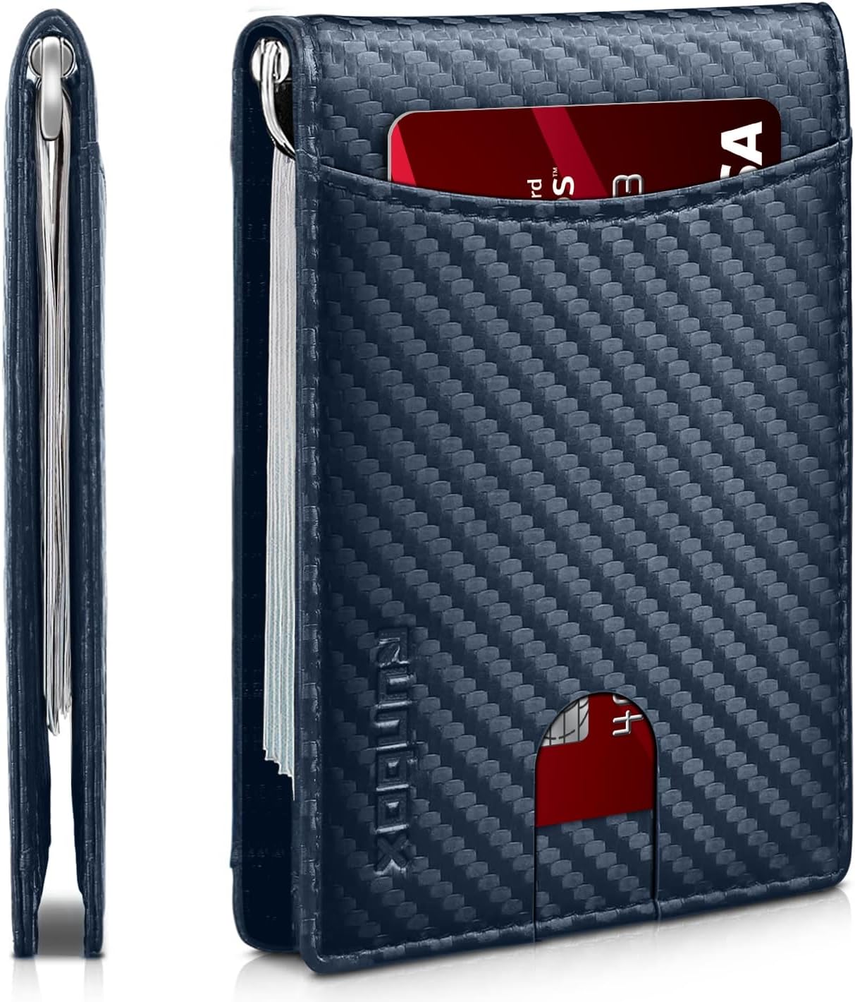 Slim Money Clip Wallets for Men RFID Blocking 11 Card Holder Minimalist Small Thin Carbon Leather Bifold Mens Front Pocket Wallet Gift Box