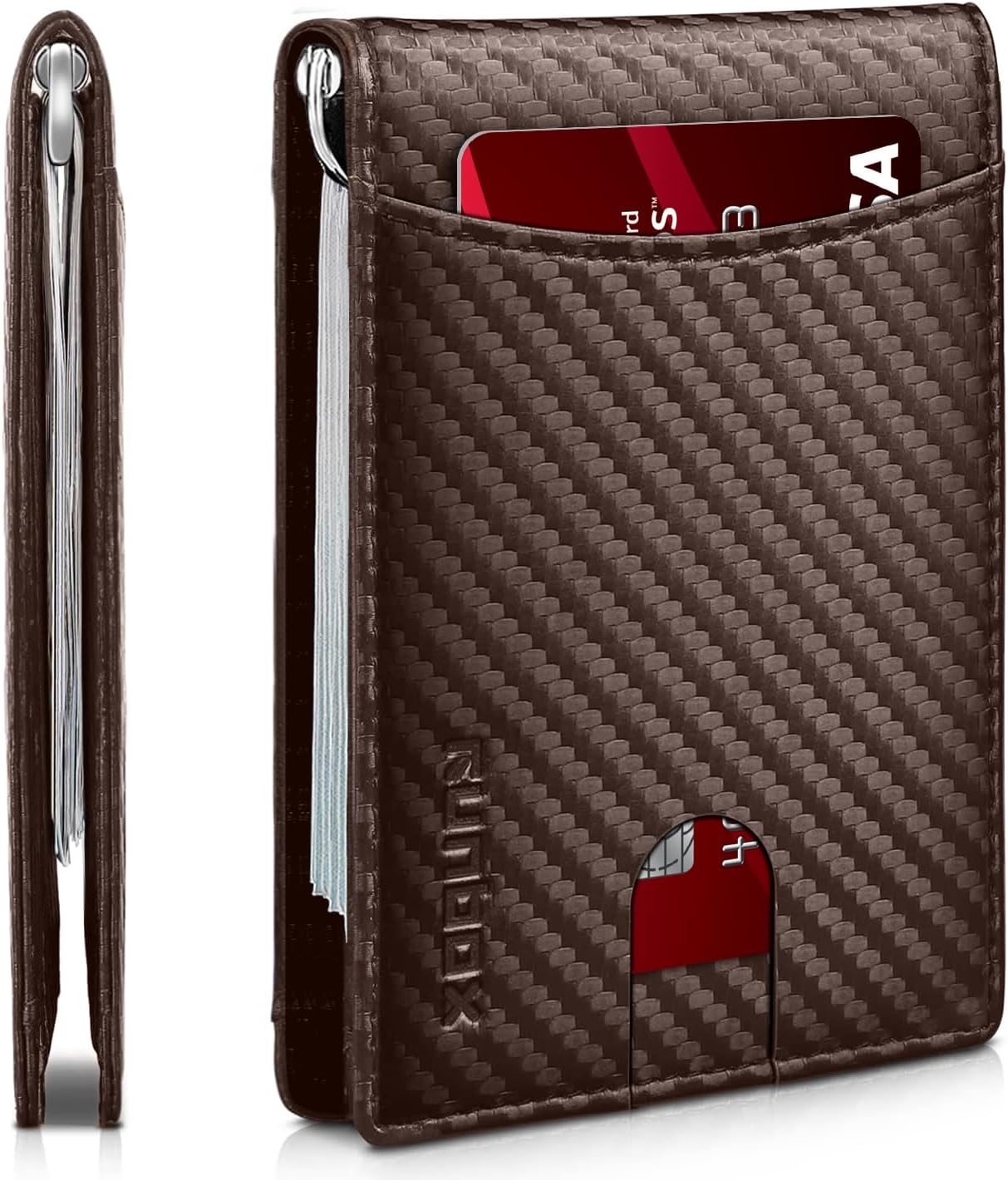 Slim Money Clip Wallets for Men RFID Blocking 11 Card Holder Minimalist Small Thin Carbon Leather Bifold Mens Front Pocket Wallet Gift Box