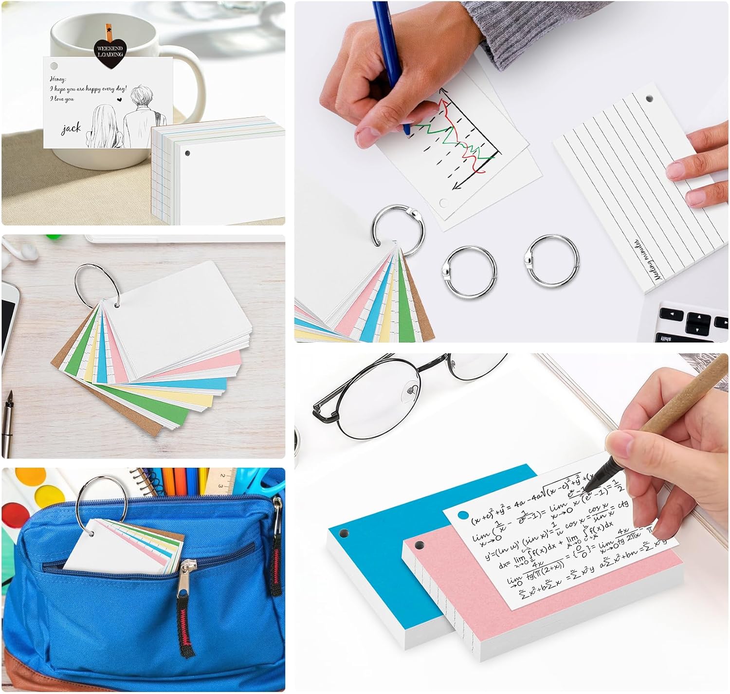 - Come in Handy - Our small Index cards are pocket-size,These note cards with rings can be carried anywhere in your coat pocket, school bag and handbag, it can be used to take notes, memorize words, make plans, schedule reminders, etc.Whtie revision cards Suitable for school, home, office daily use.