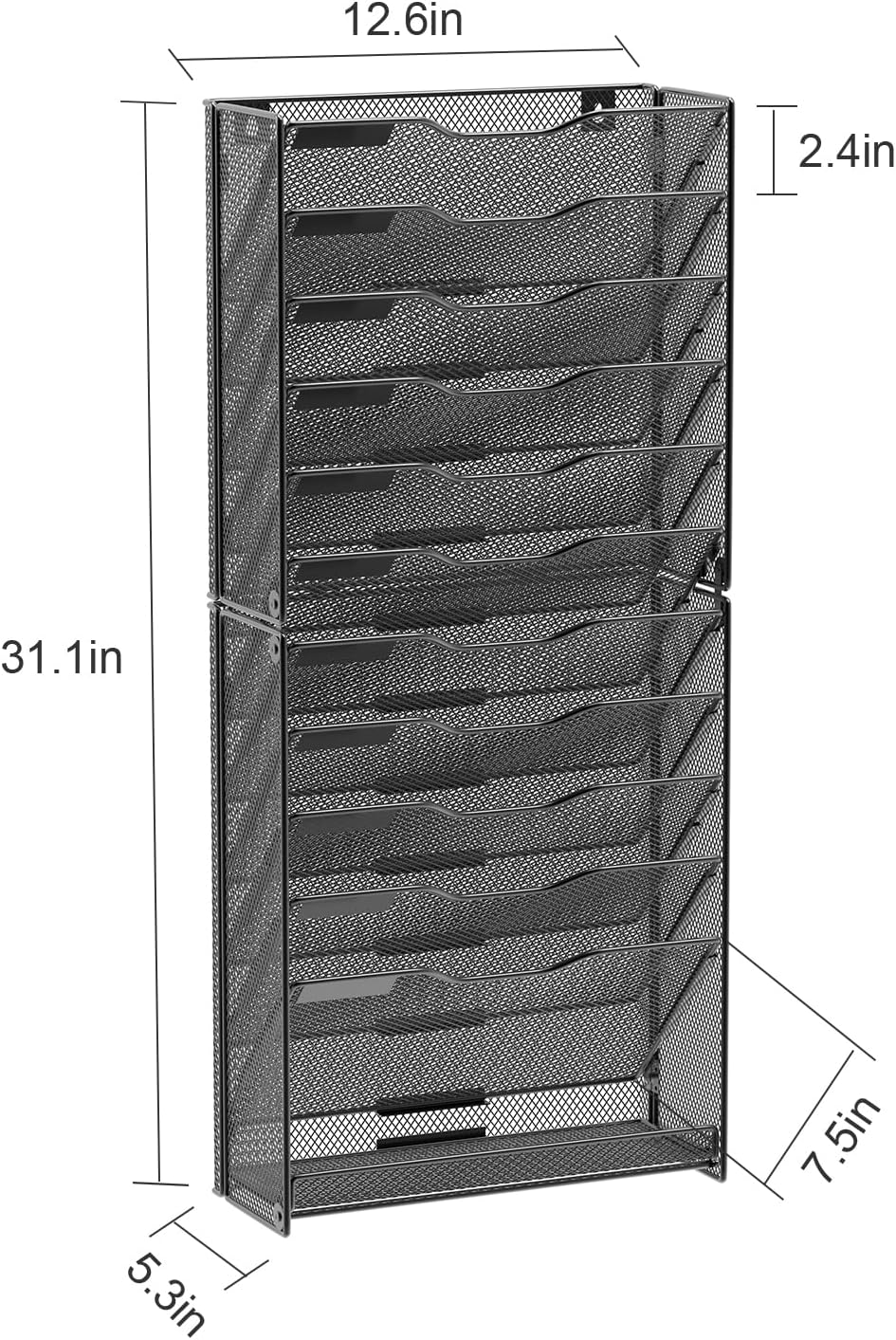 - Super Large Wall Organizer: 12 tier shelves allows you filling all different types of papers, letters, mails, clipboard, magazines ,file folders, documents etc. Bottom Flat tray can storage your other desk accessories.