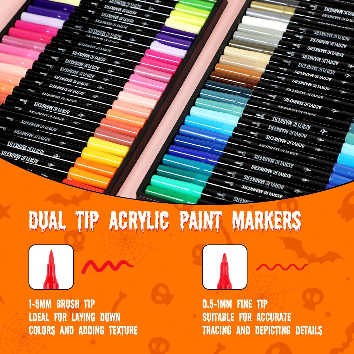 - 【Versatile Dual-Tip Design】: Unleash your creativity with our acrylic markers featuring a unique dual-tip design. The extra-fine tip is perfect for intricate details, while the brush tip allows for expressive brushstrokes. From delicate line work to bold sweeps, these markers adapt effortlessly to your artistic vision.