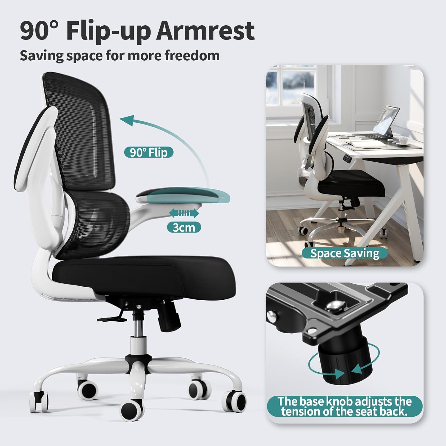 TRALT Office Chair - Ergonomic Desk Chair with Adjustable Lumbar Support, Mesh Computer Chair, Executive Chairs for Home Office Comfortable Lumbar Support (White+Black)