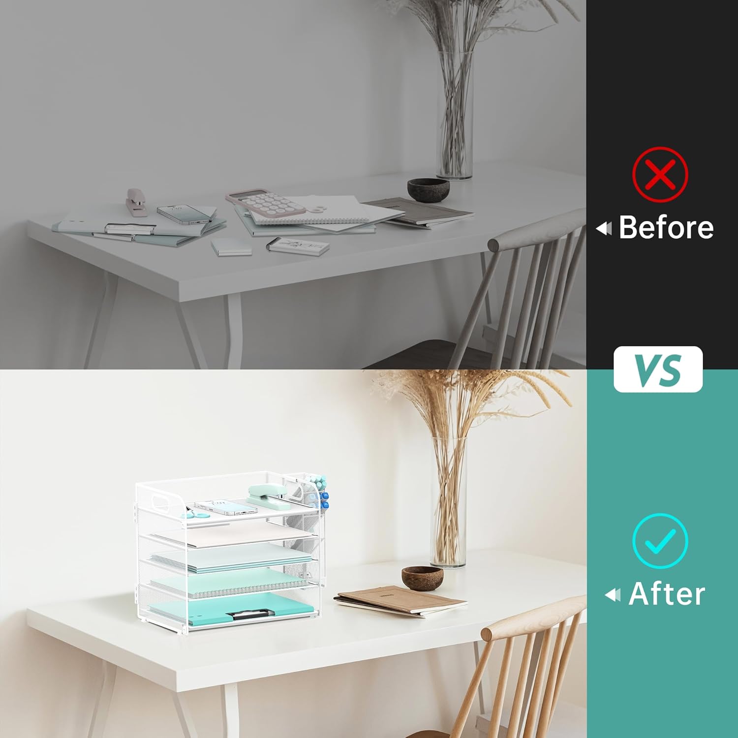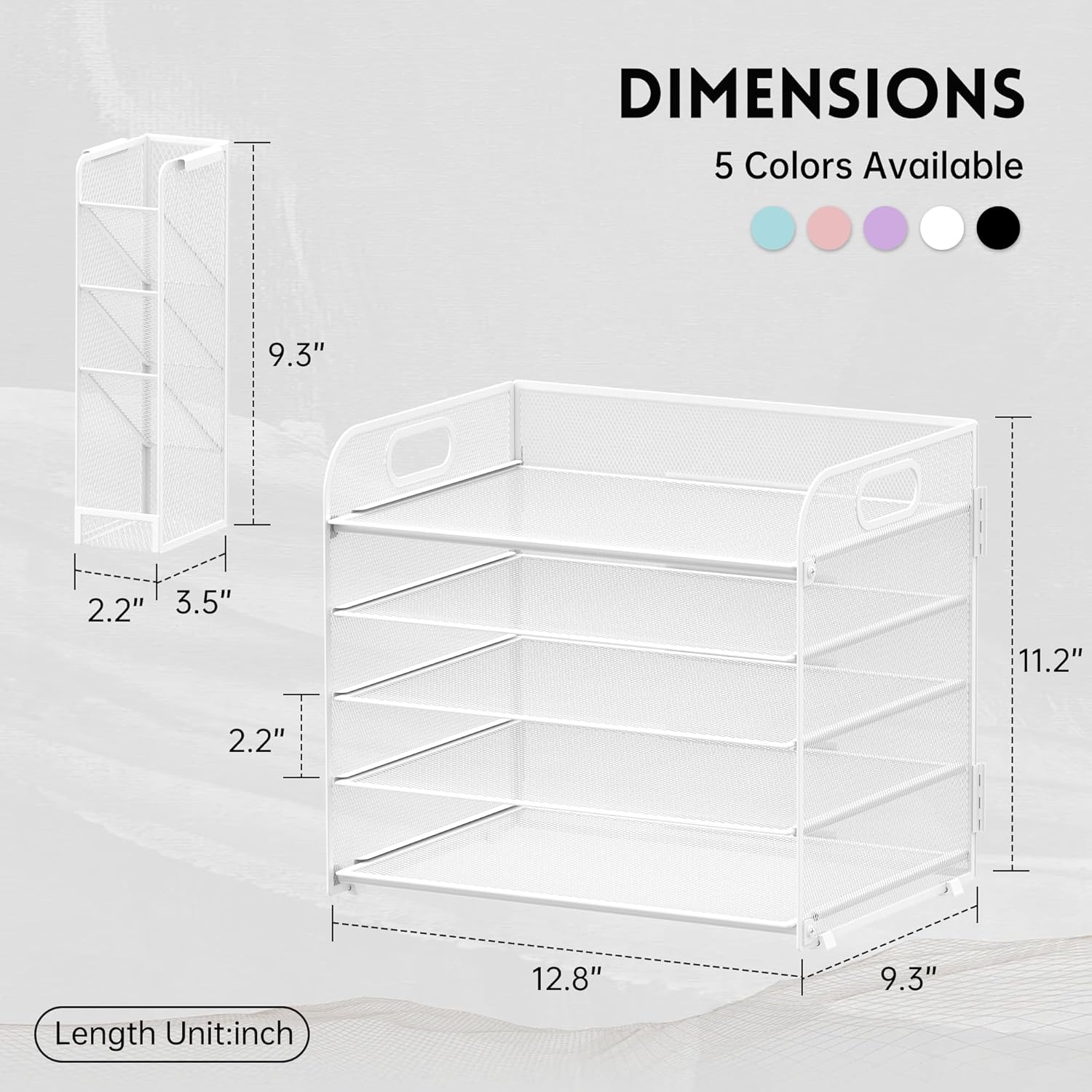 - [Mesh Steel Construction] The mesh desk file organizer is made of lightweight robust metal mesh and reinforced with a solid steel frame that makes our desk tray have long-lasting strength and reliable performance. Equipped with 4 non-slip feet, 5 tier document organizer is hard to be twisted, and its bearing capacity is strong.