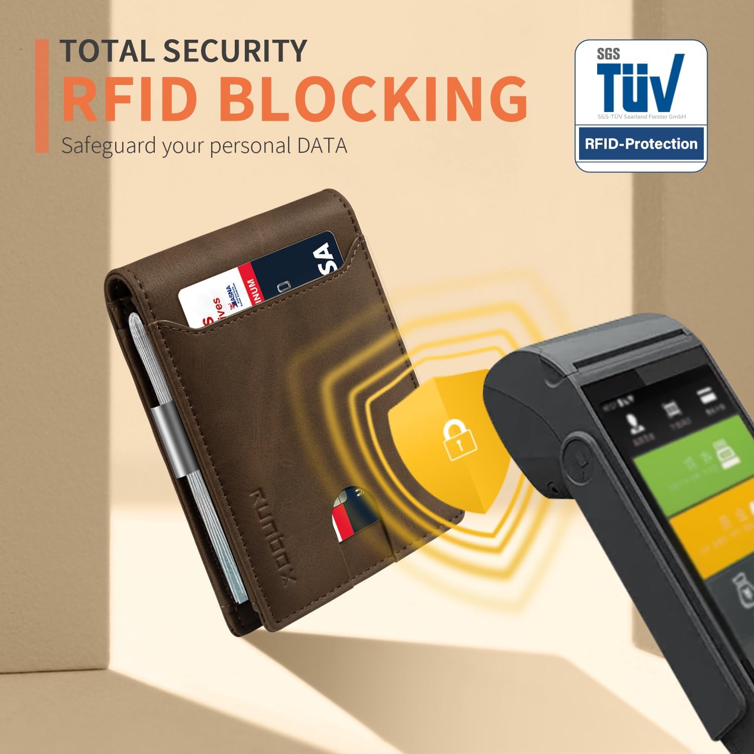 - ππ ππ ππ§ππ’-ππ‘πππ ππππππππ - this slim wallet for men equipped with German Instiute Certified RFID Security technology, a unique metal composite, engineered specifically to block 13.56 MHz or higher RFID signals to protect the valuable information and privacy