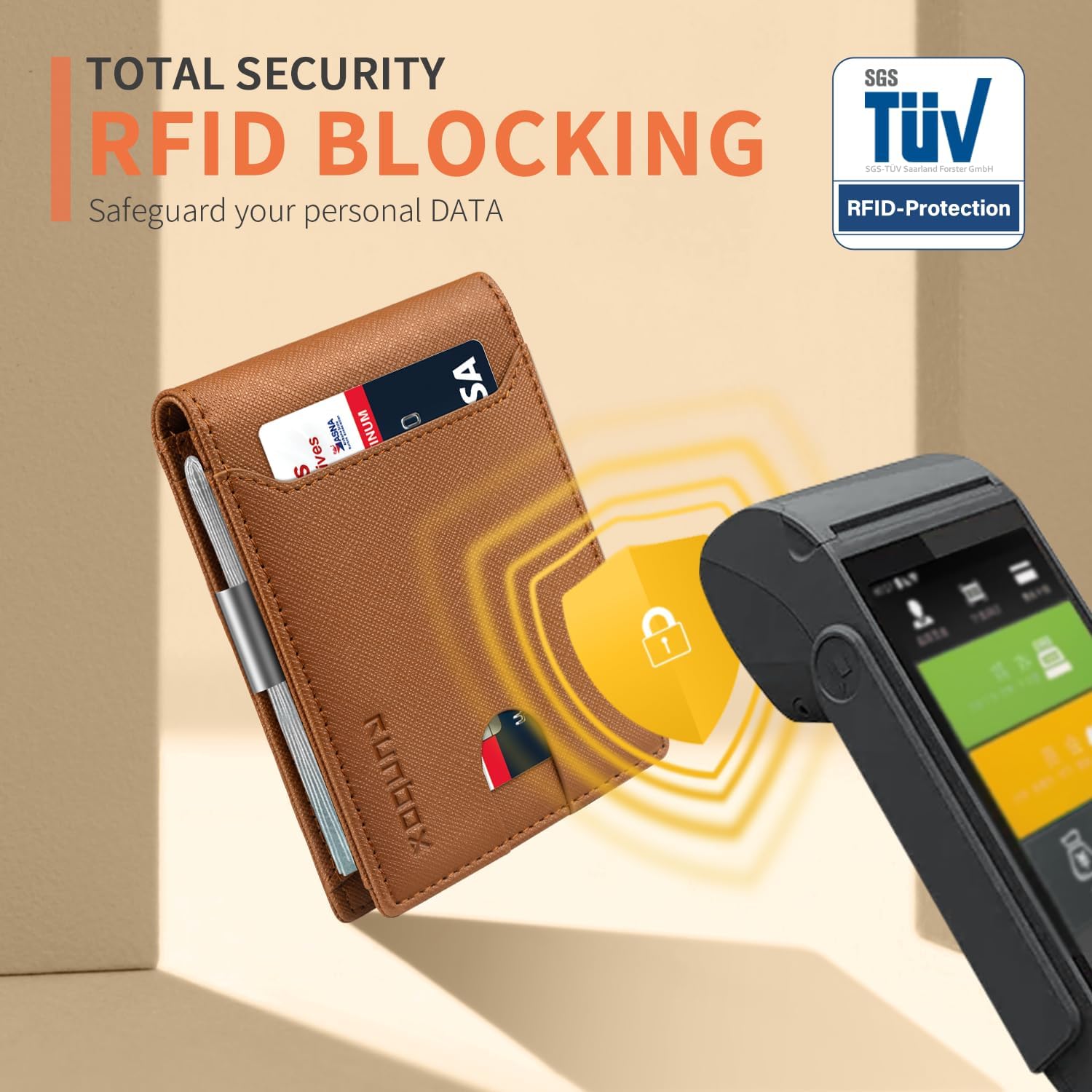 RUNBOX Slim Wallets for Men - Leather Money Clip Mens Wallet - RFID Blocking Front Pocket Bifold Wallet - Thin Credit Card Holder with Gift Box