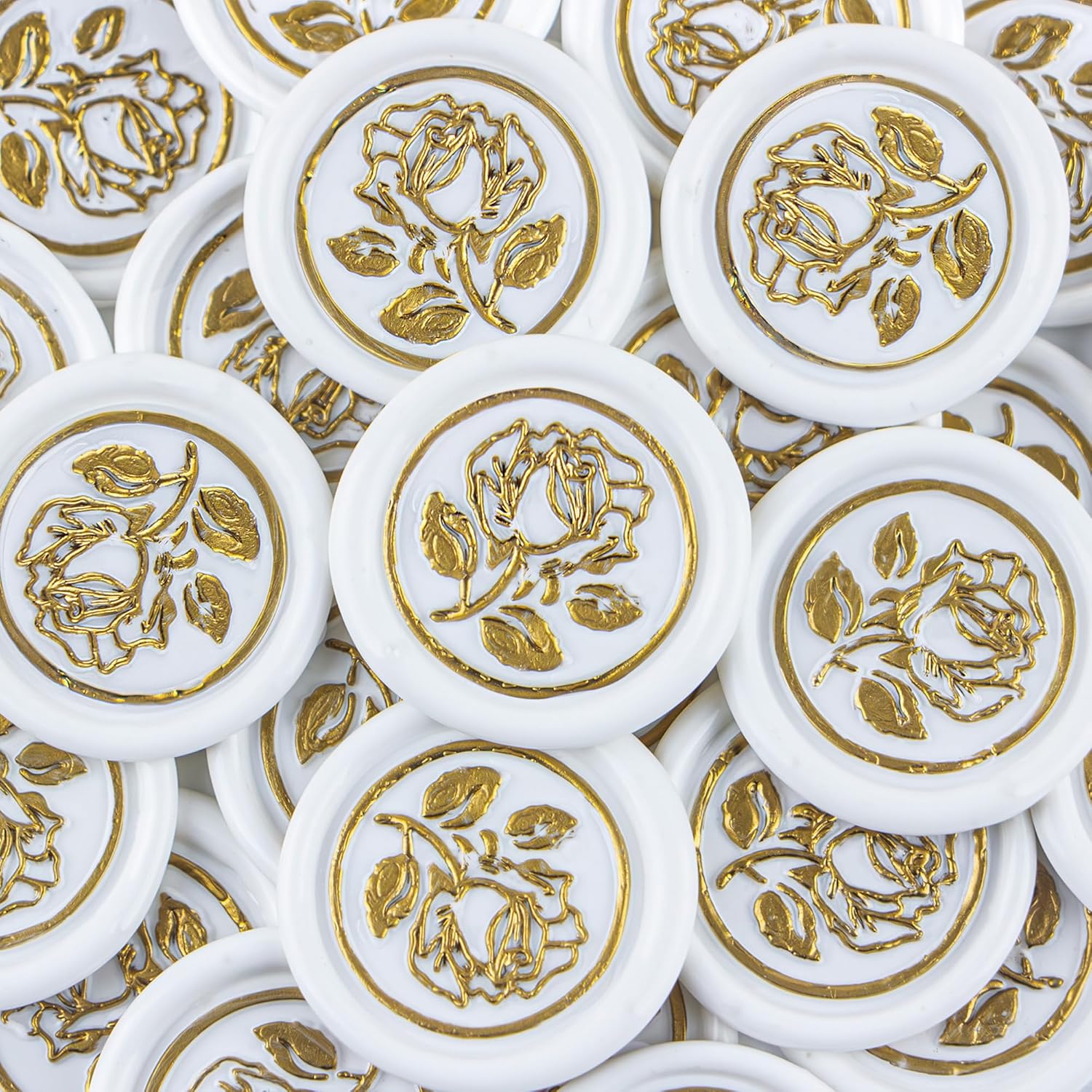 25Pcs Gold & White Wax Seal Stickers - Handmade Envelope Seals, Self-Adhesive Wax Stickers for Wedding Party Invitations, Envelope, Gift Wrap, Christmas (Gold Rose Style, White)
