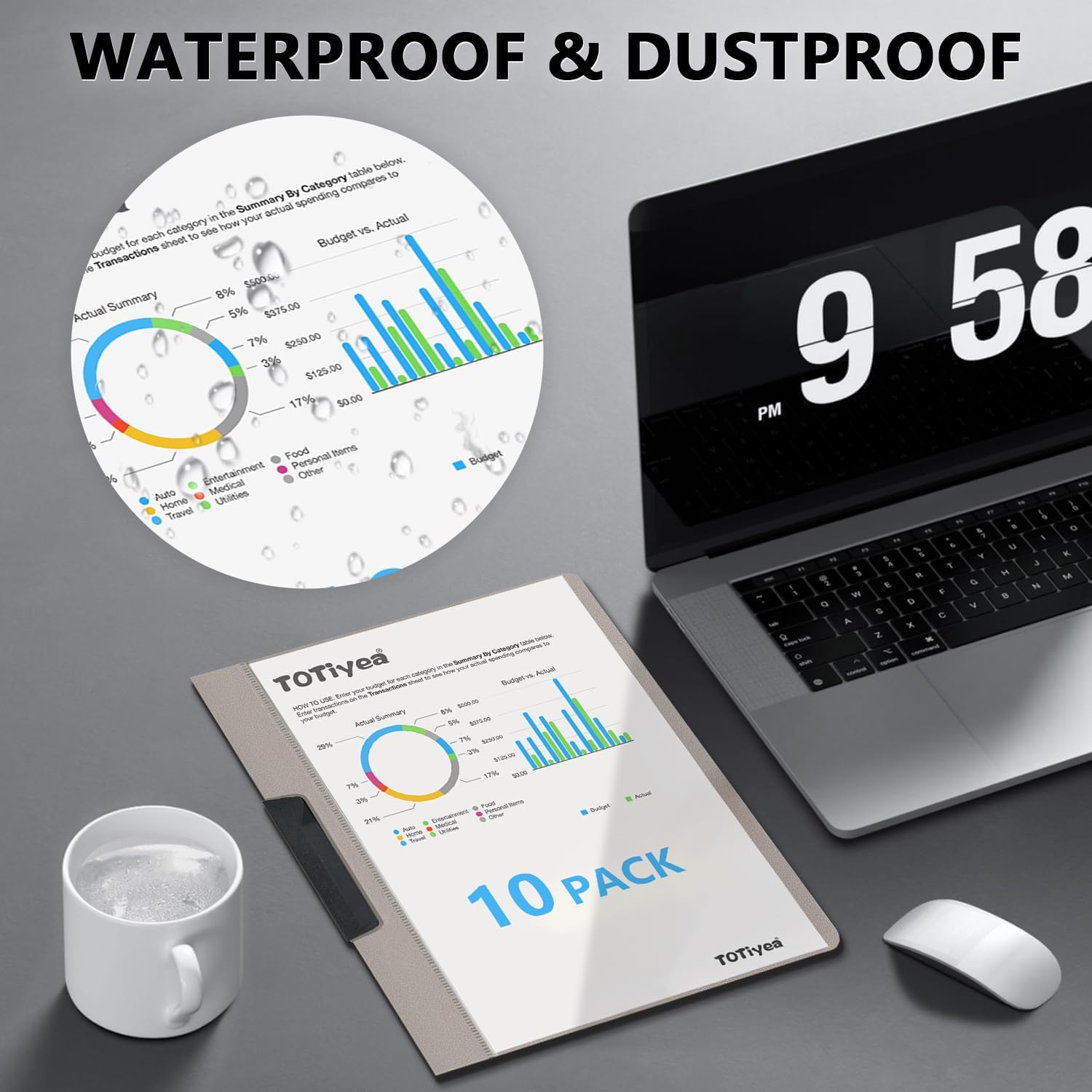 TOTiyea 10 Pack Clear Report Covers with Swing Clip, File Folder with Swing Clip, 30 Sheets Capacity, Slide Locking Report Covers, Letter Size (Grey, 10 Pack)