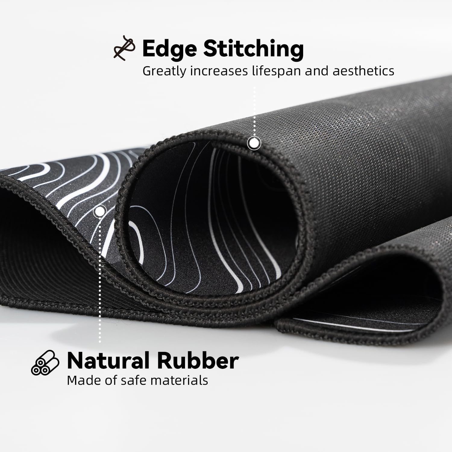 Waterproof Large Gaming Mouse Pad with Durable Stitched Edges, Non-Slip Rubber Base, Smooth Surface Mouse Mat Desk Pad for Home Office Gaming, 31.5"x11.8"x0.12", Black Topographic Map