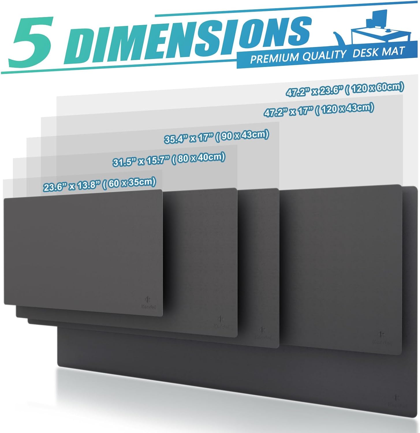 K KNODEL Large Office Leather Desk Mat, Mouse and Keyboard Pad, Computer and Laptop Mat, Desktop Protector and Cover, Writing Pad and Blotter (47.2"x17", Dark Gray)