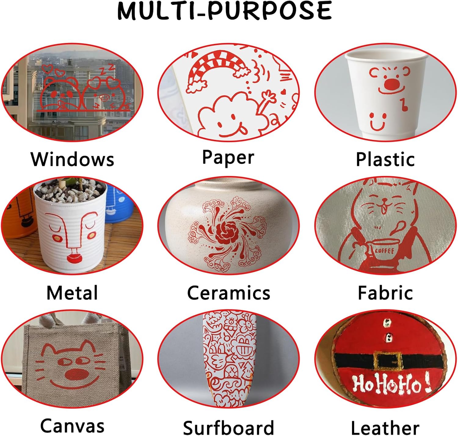 - Artistry Without Limits: Our multi-surface markers work beautifully on glass, metal, ceramic, fabric, paper, and more. Presented in a stylish box, they make the ideal gift for artists, students, and DIY enthusiasts.