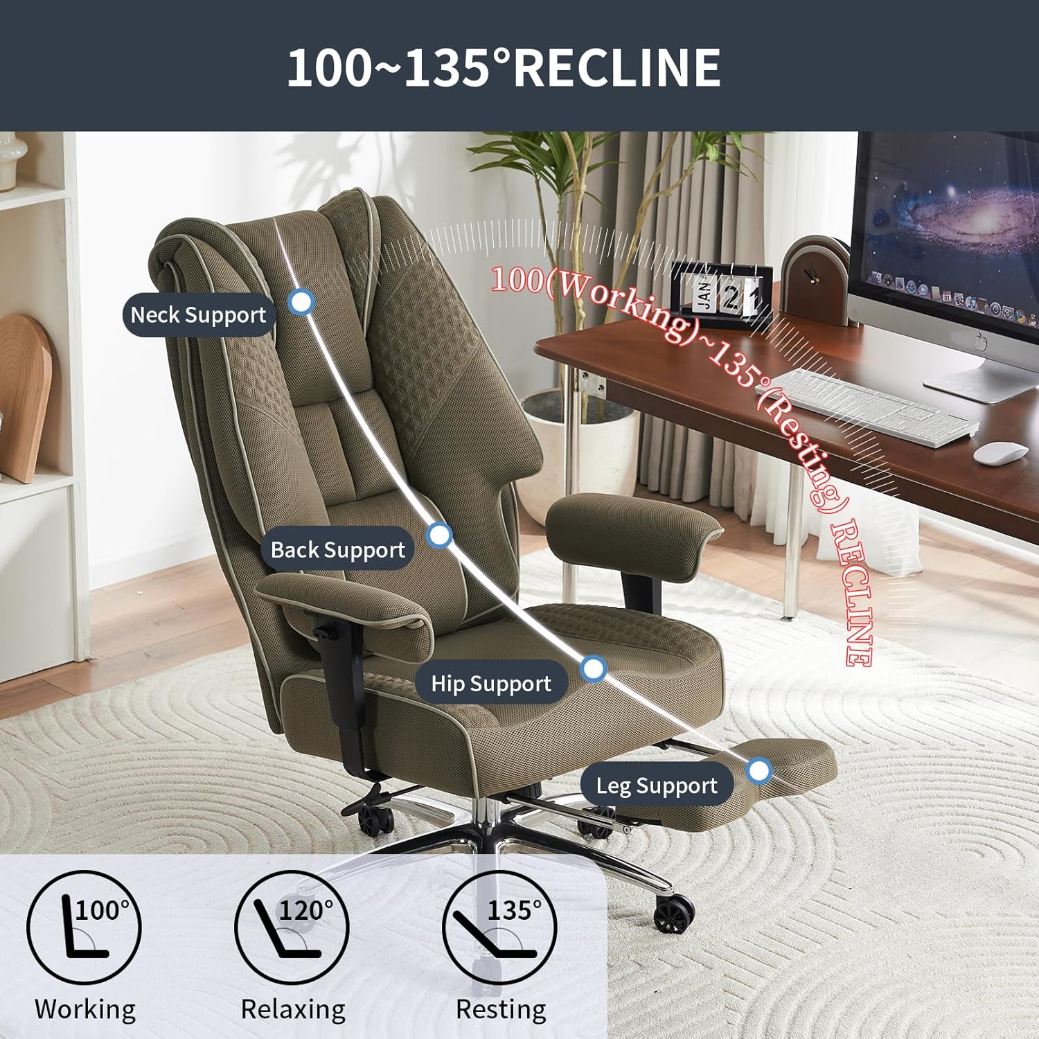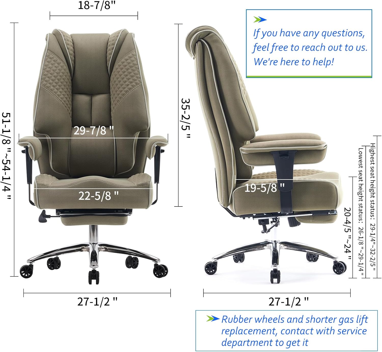 - Quality Assurance: The heavy duty office chair is built with top-grade materials, including an SGS-certified class 3 gas cylinder and a BIFIMA-approved metal base. The plus size office chair undergoes rigorous durability tests to ensure frame and component longevity for daily use