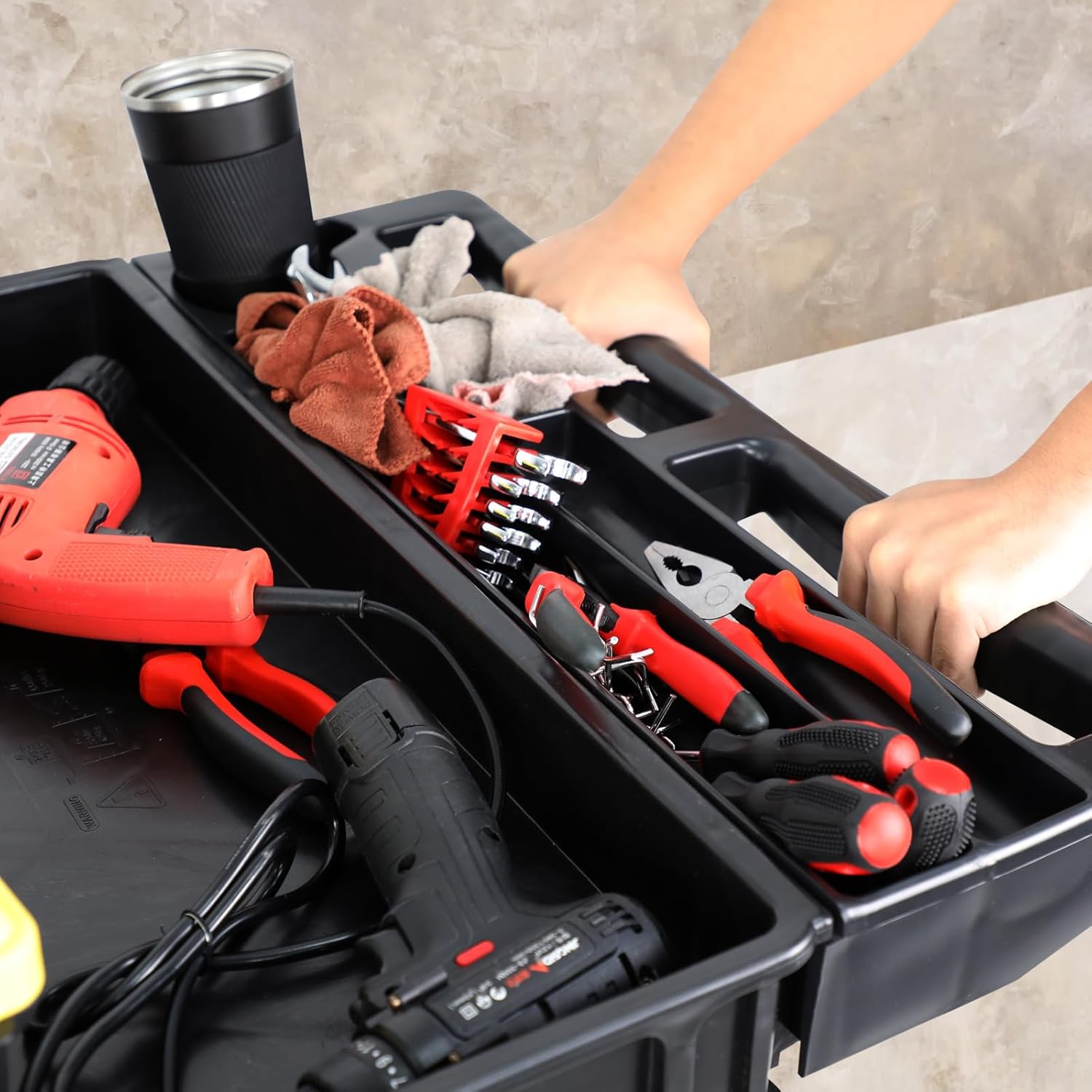 - ✨【LARGE SIZE DESIGN】: The top of this product features a large flat design where you can place large tools or equipment. The excellent backboard design ensures stability and safety during transportation.