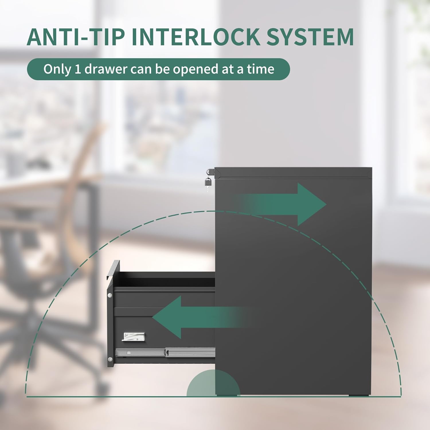 - ăHIGH SECURITYăThis filing cabinets for home office with lock has one lock equipped with 2 keys securing all your files,you can lock all the drawers at the same time,with an anti-tilting mechanism, when one drawer of the narrow file cabinet is opened, the interlocking system prevents the other drawer from opening.