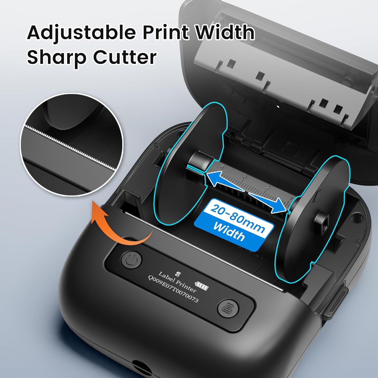 - Multiple Features and Templates: Multiple materials and templates for you to use, this sticker printer allows you to design and edit labels easily. One key scanning to add templates, you can easily add text, pictures, barcodes, QR codes, etc., so that your printing is more flexible and convenient