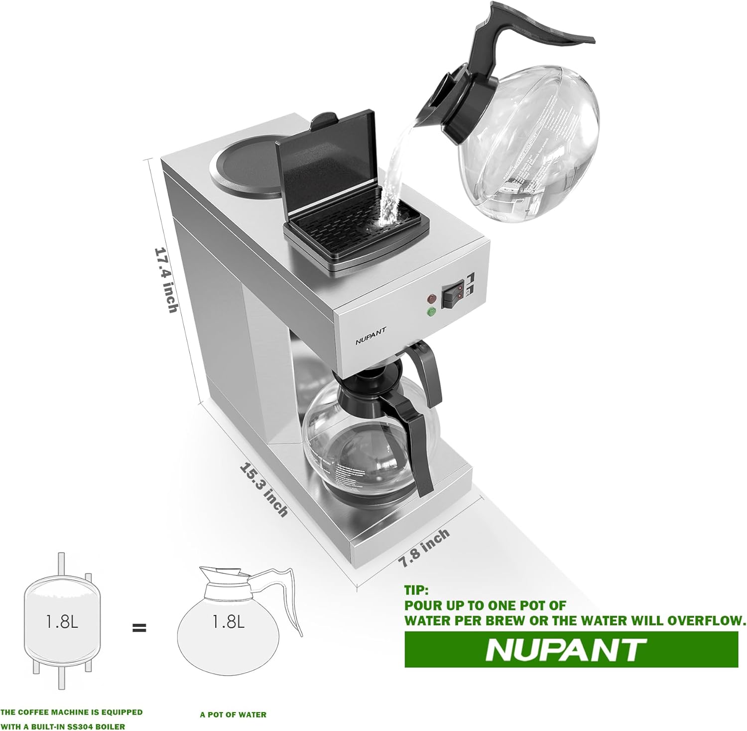 - Commercial Coffee Pots: The 12 cup coffee machine is made of SS304 for housing and funnel. The professional coffee maker can be used anywhere. It is suitable for restaurants, churchs, cafeterias, wedding and beverage stations, also for home use