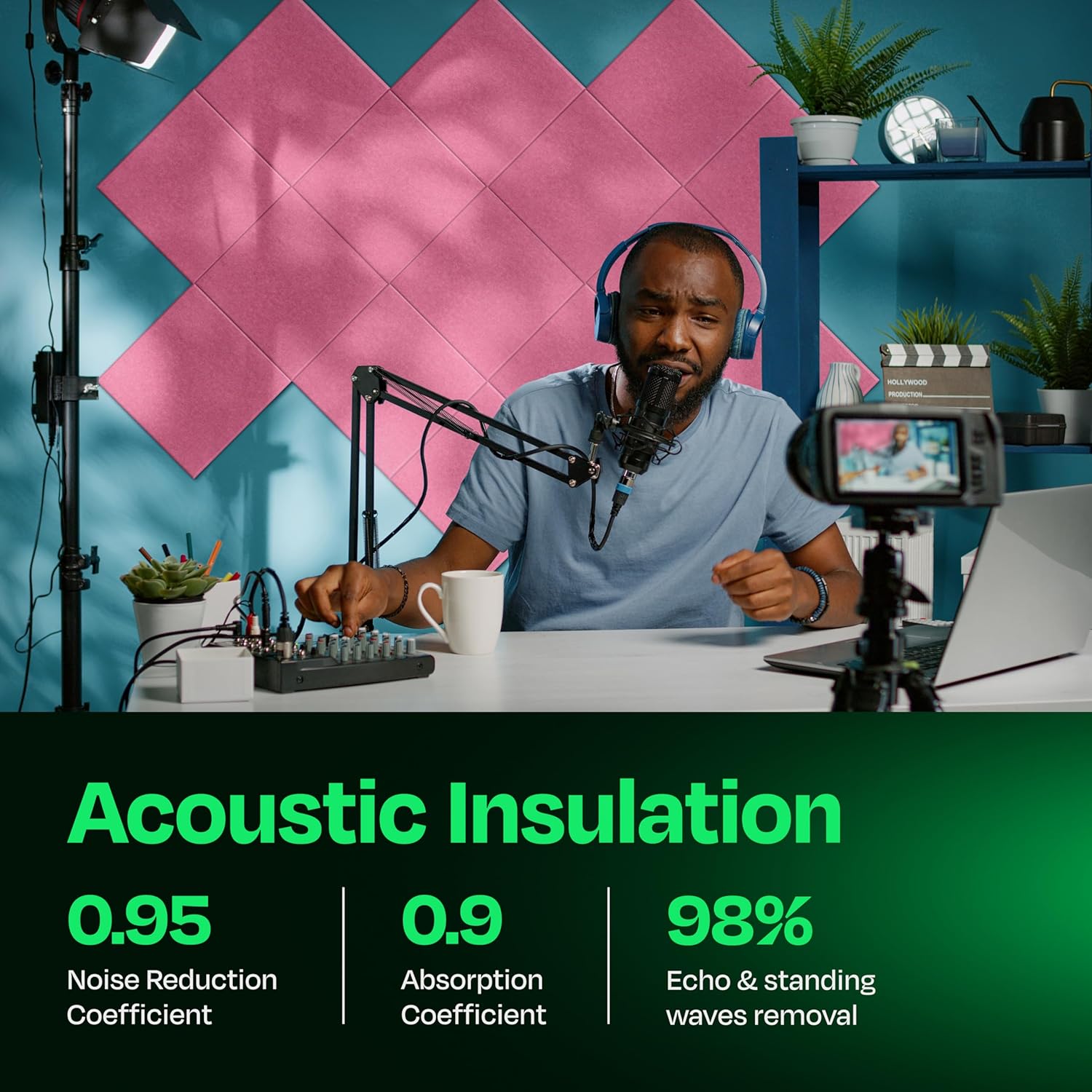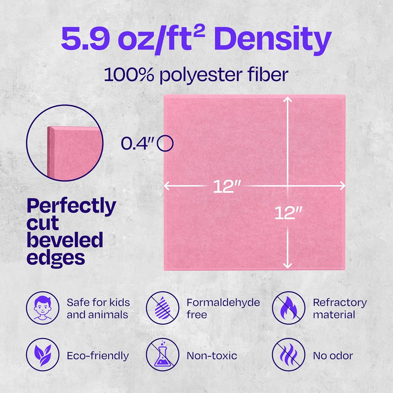 Acoustic Panels 12-Pack Soundproof Wall Panels 12"X12"X0.4" Sound Panels High Density Sound Dampening Panels - [Chic Pink Square]