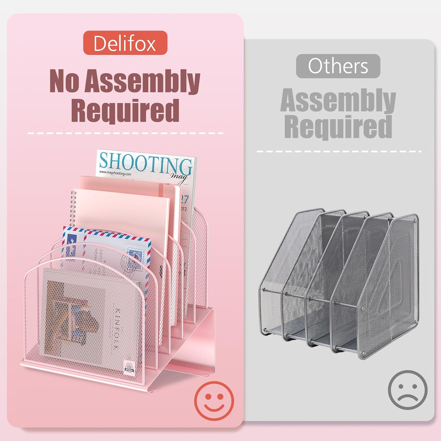 - ▶ SUFFICIENT SPACE FOR STORAGE. Delifox 5-compartment desktop file organizer is large enough to hold and classify many document or papers so as to eliminate worry of document run-off and keep track of files, folders, and other important papers