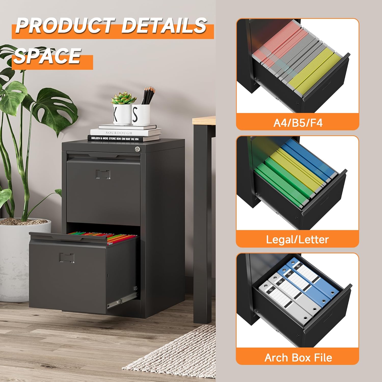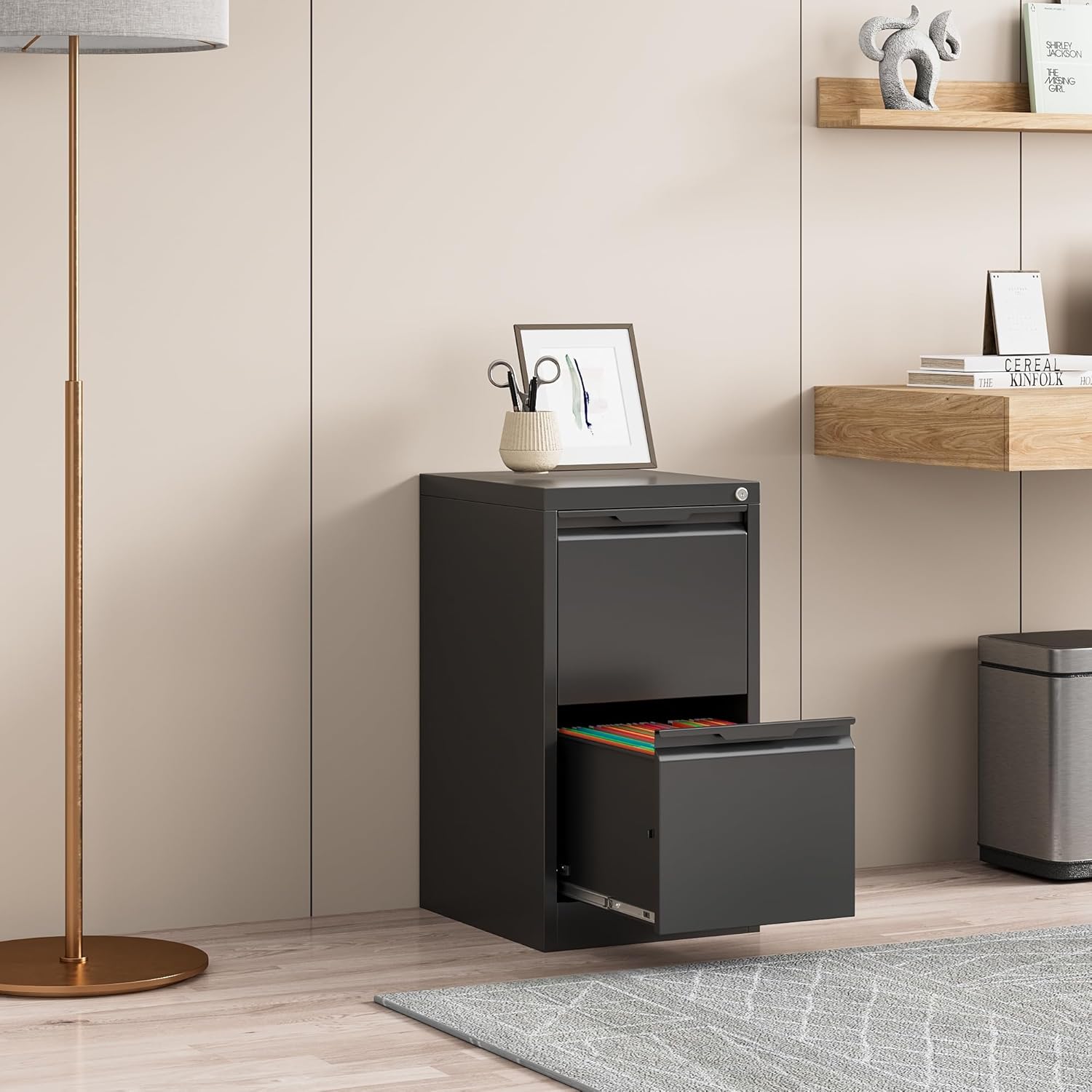 - ćSturdy and DurablećMetal file cabinet drawers crafted from steel material, designed to be durable and suitable for all your storage needs. With a powder coating process that bonds and bakes the protective coating to the bare metal, the 2 drawer file cabinet with lock forms an effective barrier against corrosion.