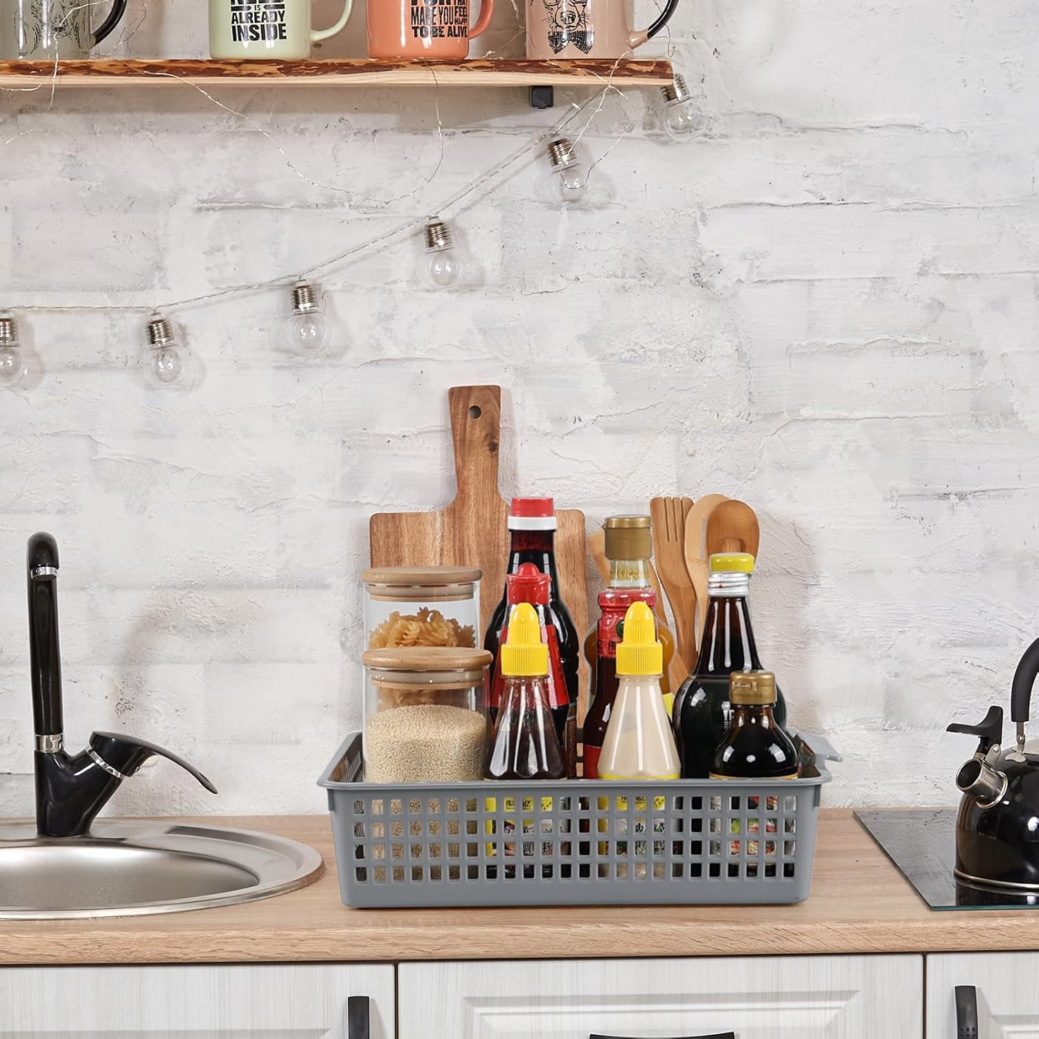 6 Packs Plastic Storage Baskets, Paper Organizer Baskets, Shallow Storage Basket Trays, Grey