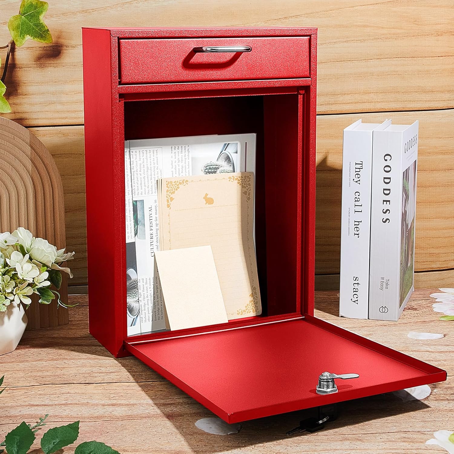 - Quality Material: crafted from quality metal material, this robust drop box promises durability; The wall mount mailbox is coated with red plating which prevents peeling off paint and rust, extending the product's service life