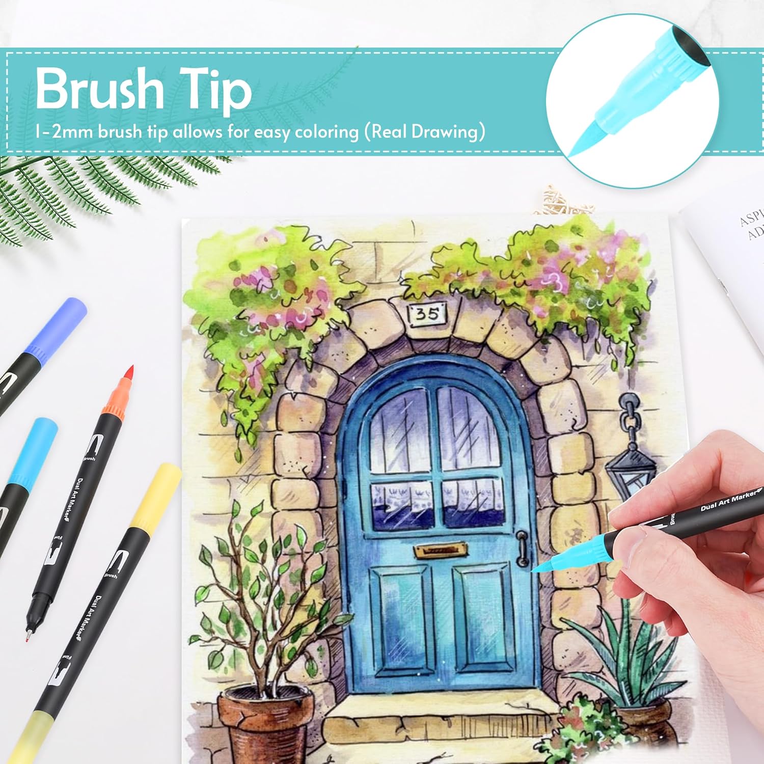 nauets 120 Colors Brush & Fine Dual Tip Watercolor Markers Set for Kids Adults Coloring Books No Bleeding Paint Pens For Drawing Note taking Planner Calligraphy Journaling Card Making Art Supplies