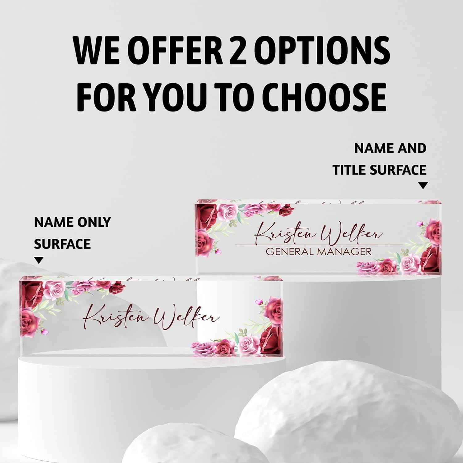 Personalized Name Plate for Desk, Custom Desk Name Plate, Acrylic Name Plate Office Desk Accessories, Personalized Office Gifts for Coworkers Teachers, Employee Appreciation Gifts (A-Rose)