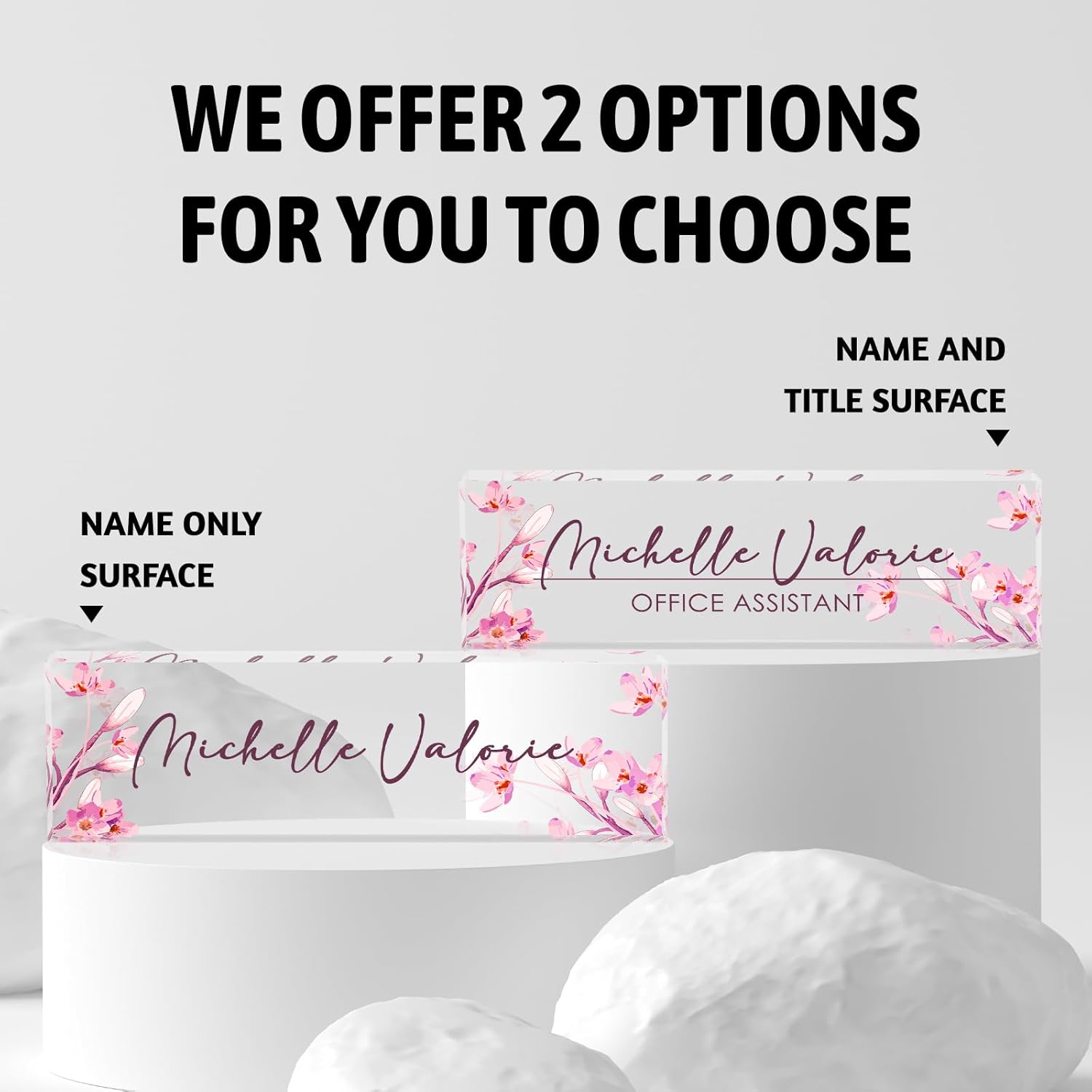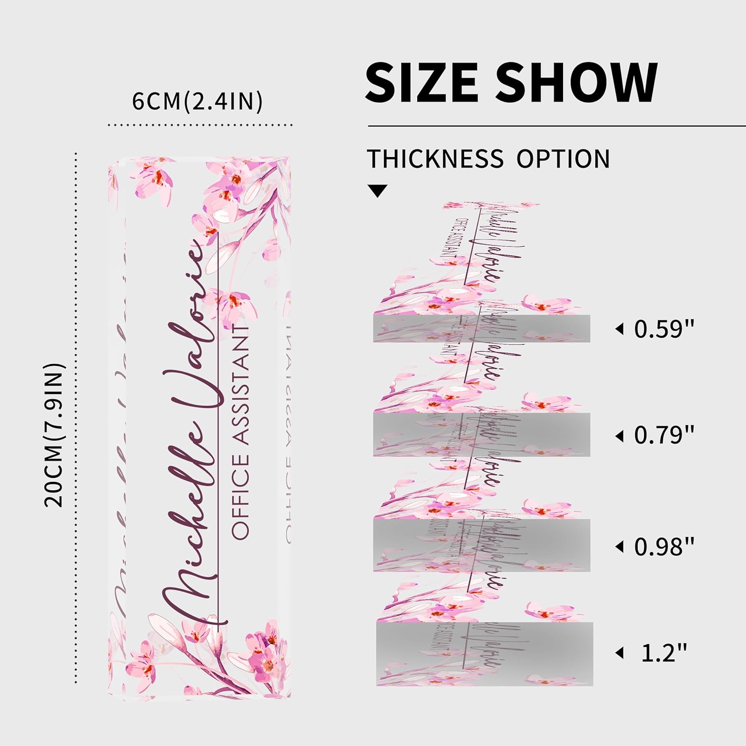 Personalized Name Plate for Desk, Custom Desk Name Plate, Acrylic Name Plate Office Desk Accessories, Personalized Office Gifts for Coworkers Teachers, Employee Appreciation Gifts (A-Pink Flower)