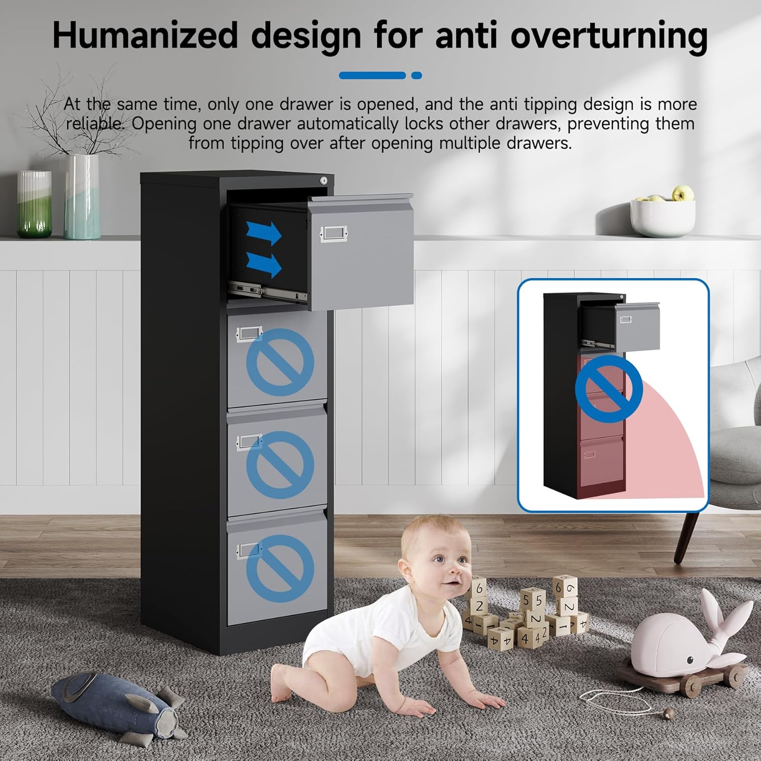 4 Drawer File Cabinet with Lock Metal Vertical Filing Cabinet Office Home Lateral File Cabinet for A4 Legal/Letter Size,Assembly Required (Black Gray, 4 Drawers-Vertical)
