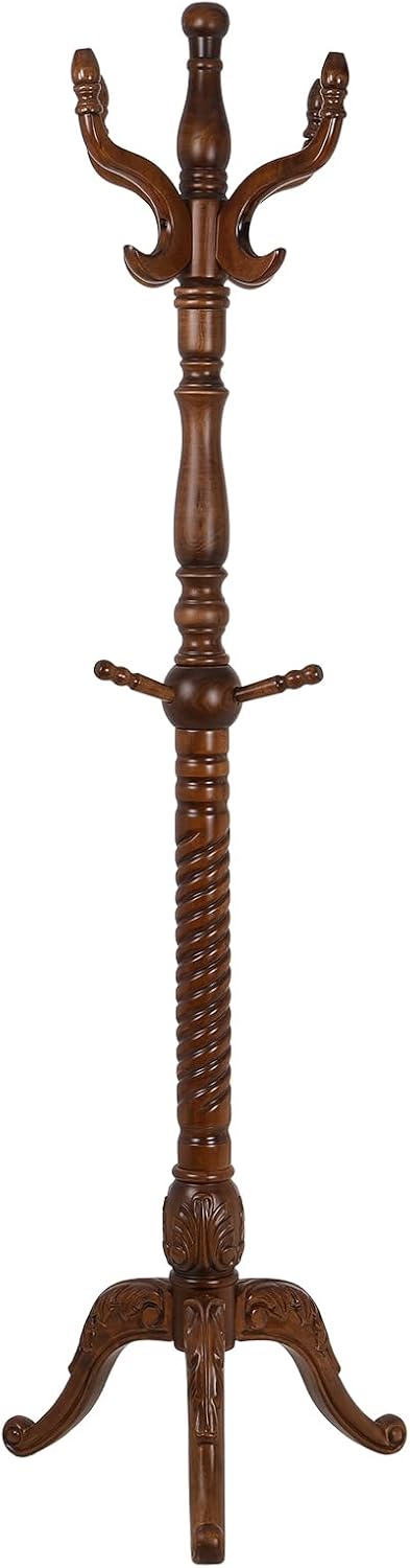 - 【Heavy Duty Construction-Extremely Stable】: This wood coat rack stand has thickened solid 3-legged base supports on the bottom for added stability and perfect balance, so it will not fall off even when shaken and can support up to 160 pounds (each hooks can hold up to 20lbs). The wood coat tree is extremely sturdy and strong enough to support coats, hats, scarves, briefcases, bags, backpack, winter jackets.
