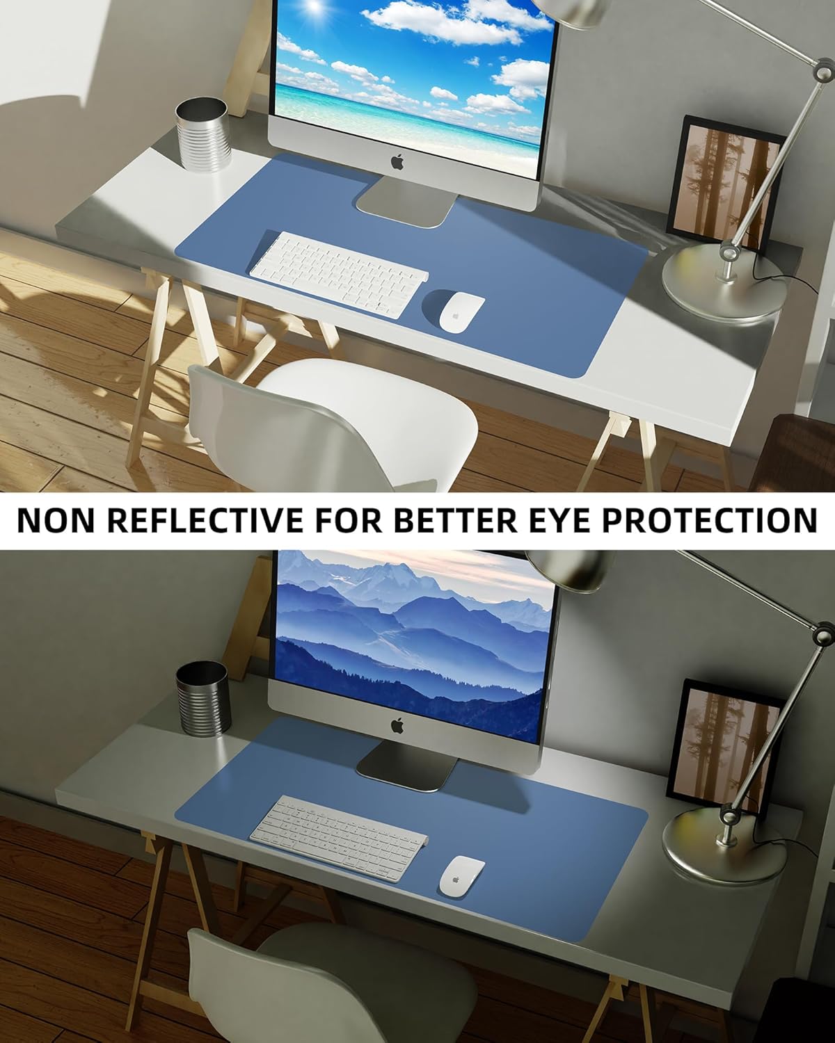 Leather Desk Pad Blotter,Mouse Pad,Office Desk Mat, Non-Slip PU Leather Desk mat,Large Desk mat,Waterproof Keyboard mat for Office/Home/Decor (Grey Blue,35" x 17")