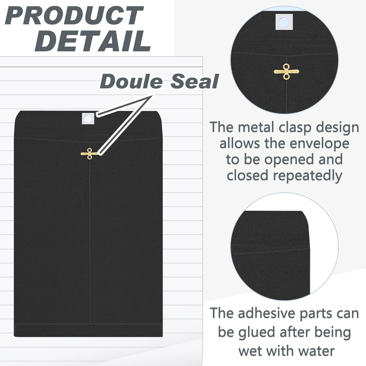 - Practical Sealing Mechanism: the metal clasps together with moisture activated gluing provide a secure grip and make the envelope easy to open and close repeatedly without damaging the content inside; The sealing mechanism ensures your documents stay safe and protected during handling