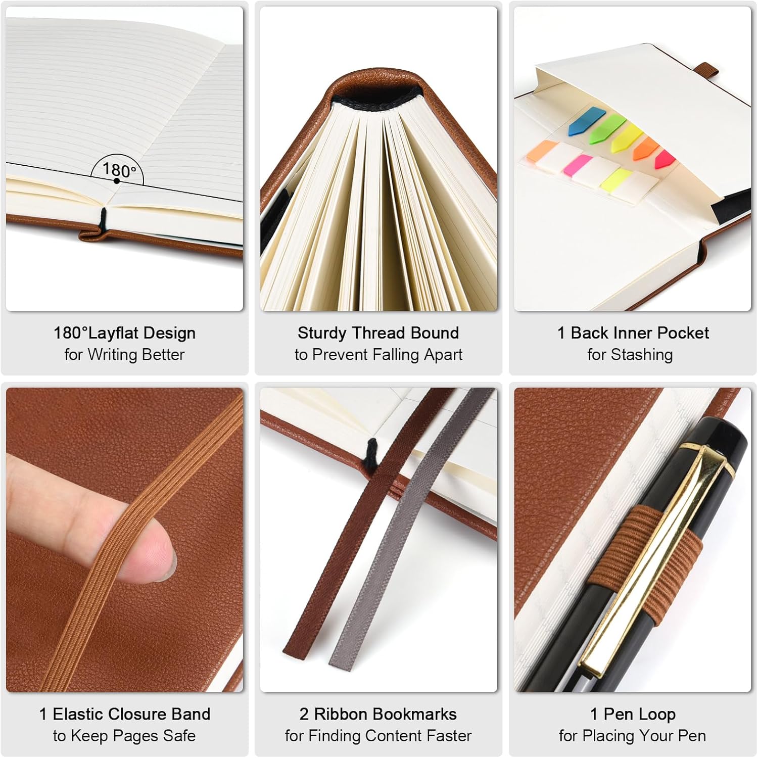 - 【Thick Enough to Handle Your Brightest Ideas】Large A5 size (5.75"x 8.38"/146mm x 213mm), 27 lines per page with 7mm spacing, total 320 pages, include 312 NUMBERED PAGES/156 sheets to provide you ample space to write. Our INNOVATIVE PAPER TECHNOLOGY on 100GSM thick paper ensures a perfect canvas for your ideas - no bleed, no ghosting.