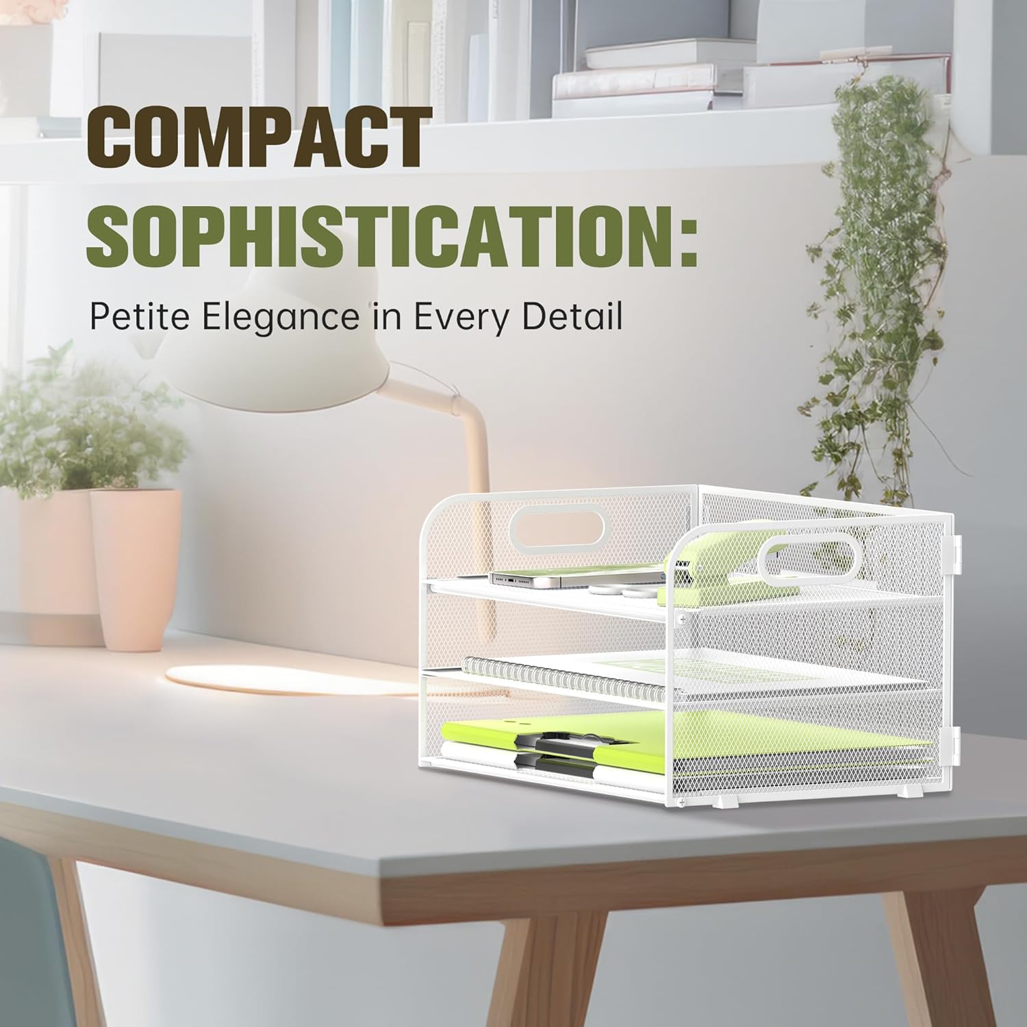 - 3 Tier Large Capacity: Our upgraded desk organizer features a 3 tier paper tray design, providing ample space for organizing letters, A4 paper, books, bills, magazines, mails, folders, notebooks, and more. With detachable trays, this organizer maximizes vertical space utilization, keeping your desktop neat and orderly.