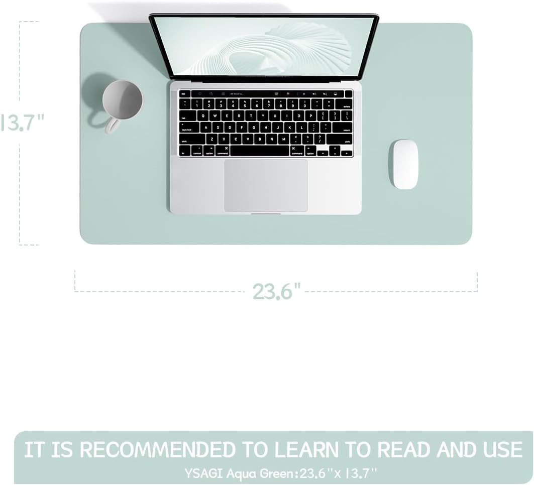 YSAGi Non-Slip Leather Desk Pad, Waterproof Laptop Computer Desk Keyboard Mat, Table Protector Blotter Mat, Large Mouse Pad for Office/Work/Home/Decor(Mint Green, 23.6" x 13.7")