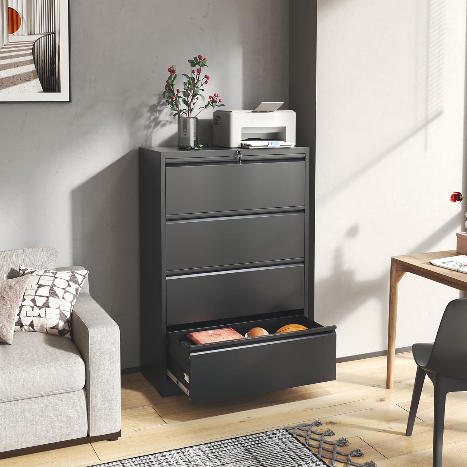 - 【Modern & Durable】This heavy-duty metal file cabinet is crafted from premium cold-rolled steel, offering exceptional durability and structural integrity. The powder-coated surface provides superior resistance to scratches, rust, and corrosion, ensuring long-lasting performance in busy office environments.
