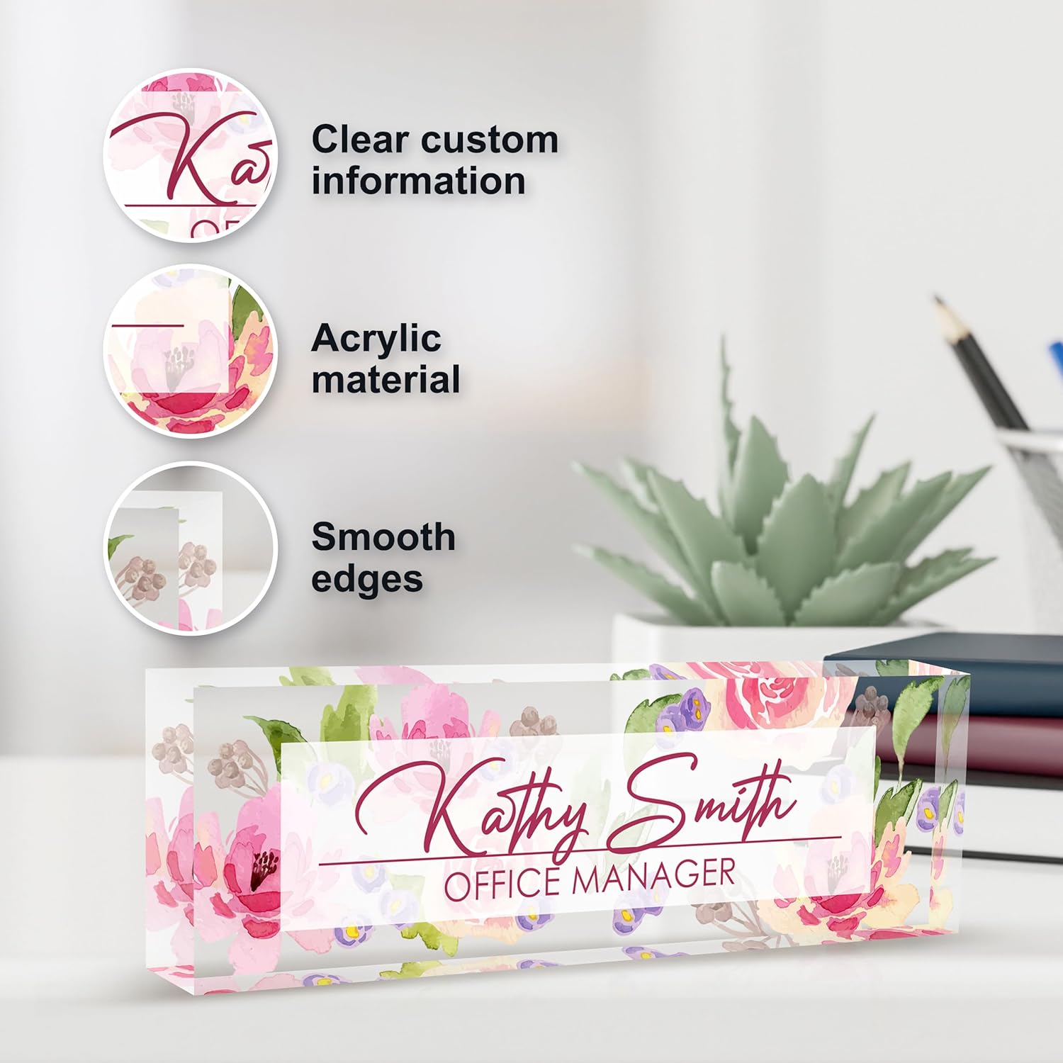Personalized Name Plate for Desk, Custom Desk Name Plate, Acrylic Name Plate Office Desk Accessories, Personalized Office Gifts for Coworkers Teachers, Employee Appreciation Gifts (A-Watercolor)