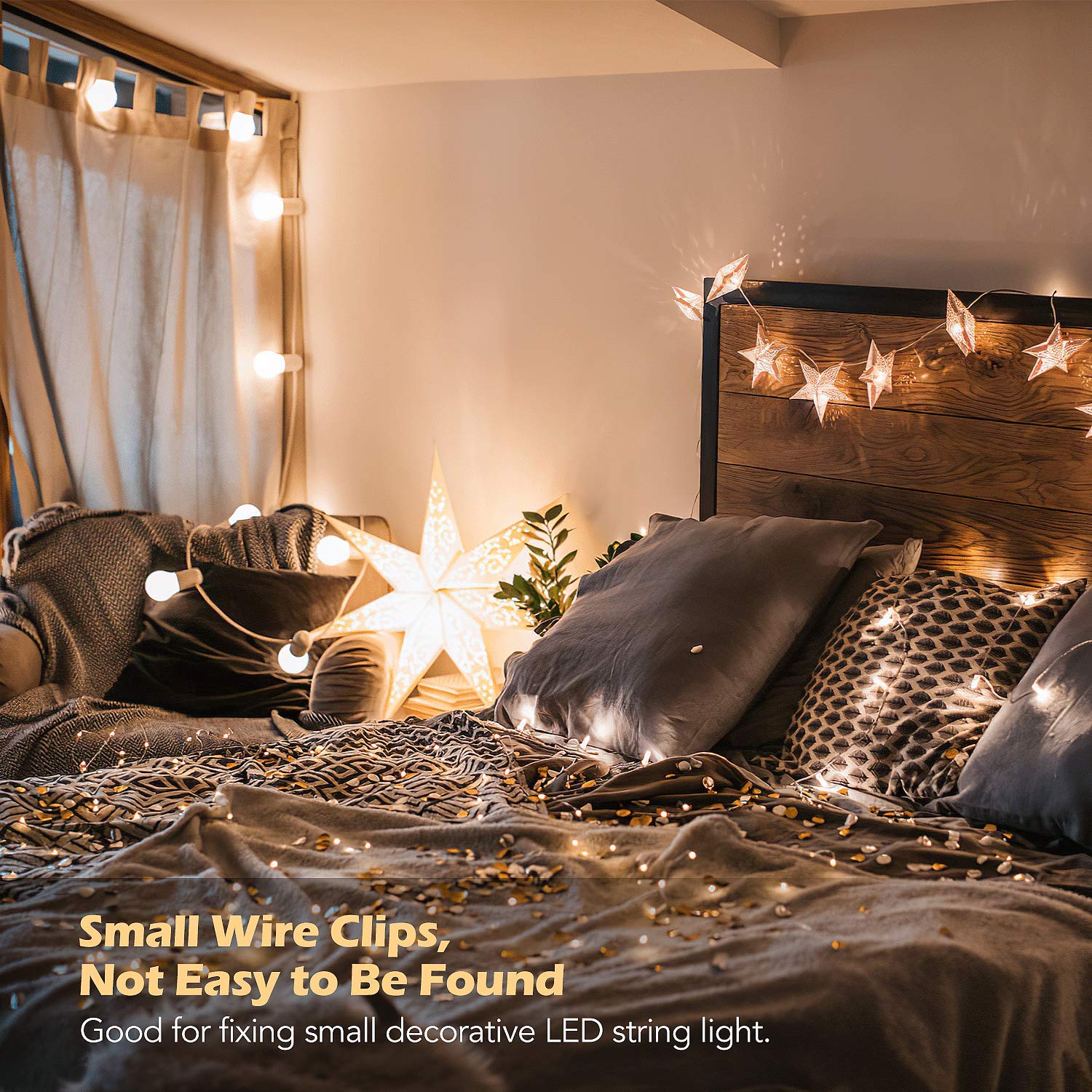 AGPTEK Ethernet Cable Clips, 60 PCS Adhesive Wire Clips, Flat Cord Clips Small Cable Holder Management for Home Wall Flat Ethernet Network Cord Organizer, Decoration Fairy Light Sticky Hooks, White