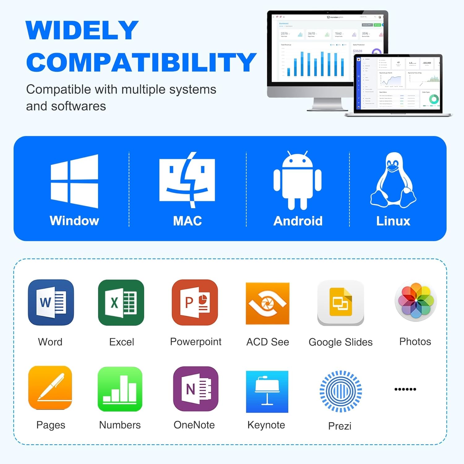 - 【USB-A & USB-C 2 in 1 Presentation Remote】The wireless presenter clicker features both USB-A and USB-C connections, allowing it to suitable for different types of device,such as macbook,laptop,pc