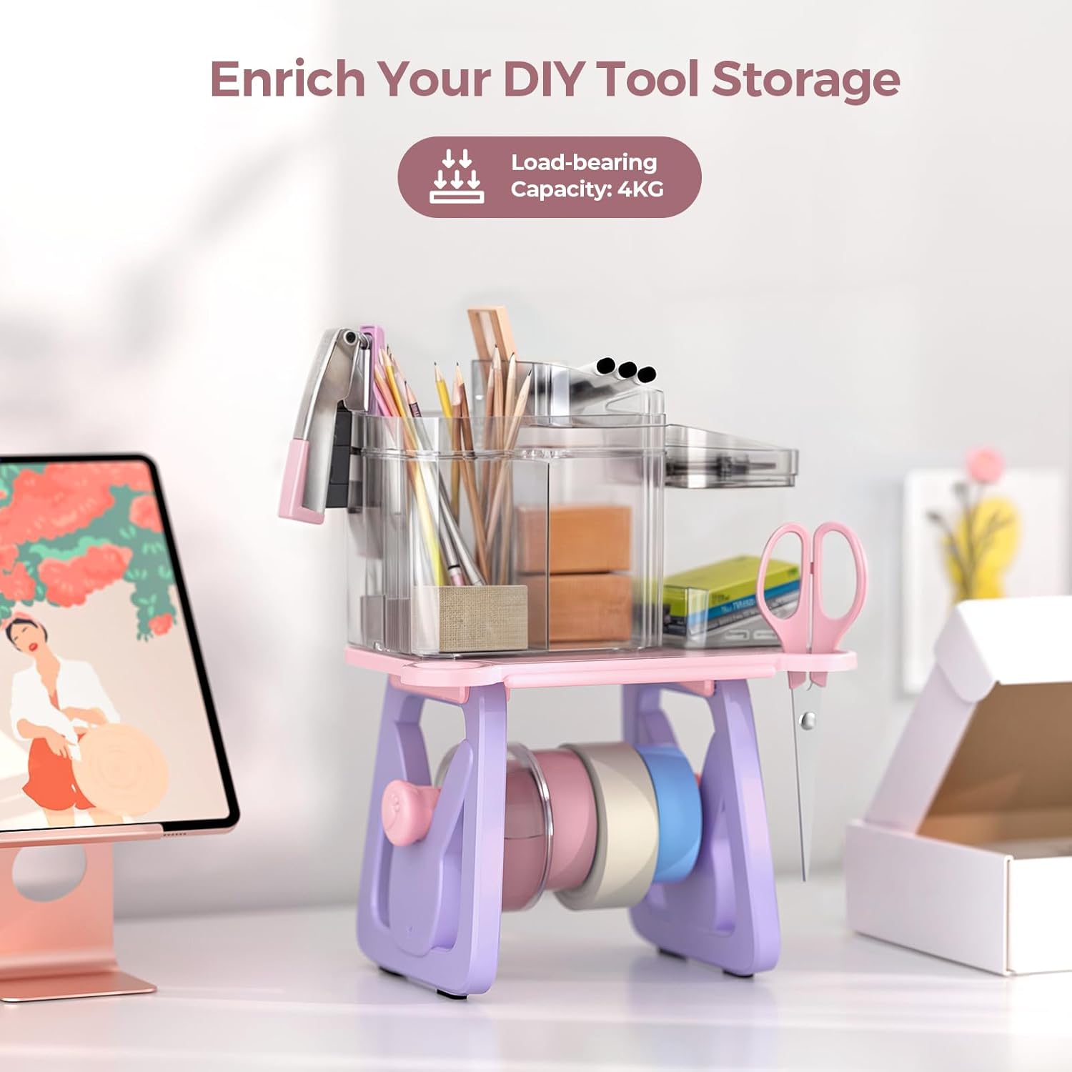- Two-step Assembly: Say goodbye to complicated setups. You can put the four main parts of the label roll holder together in just two simple steps