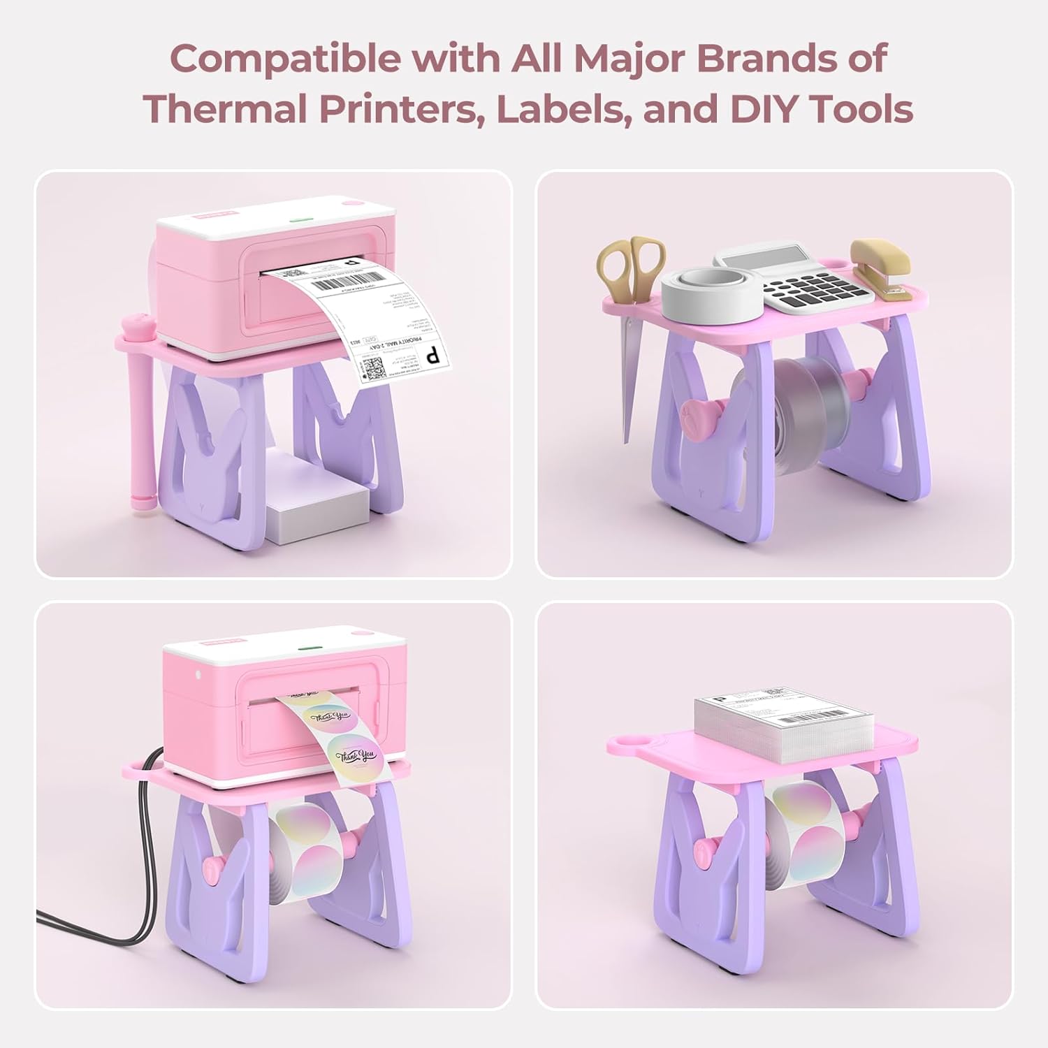 - 3-in-1 Label Holder: MUNBYN Label holder can store the printer and labels. The upper layer has holes on both sides to hide the power cord and provides a space to place label rollers, ensuring an organized workspace