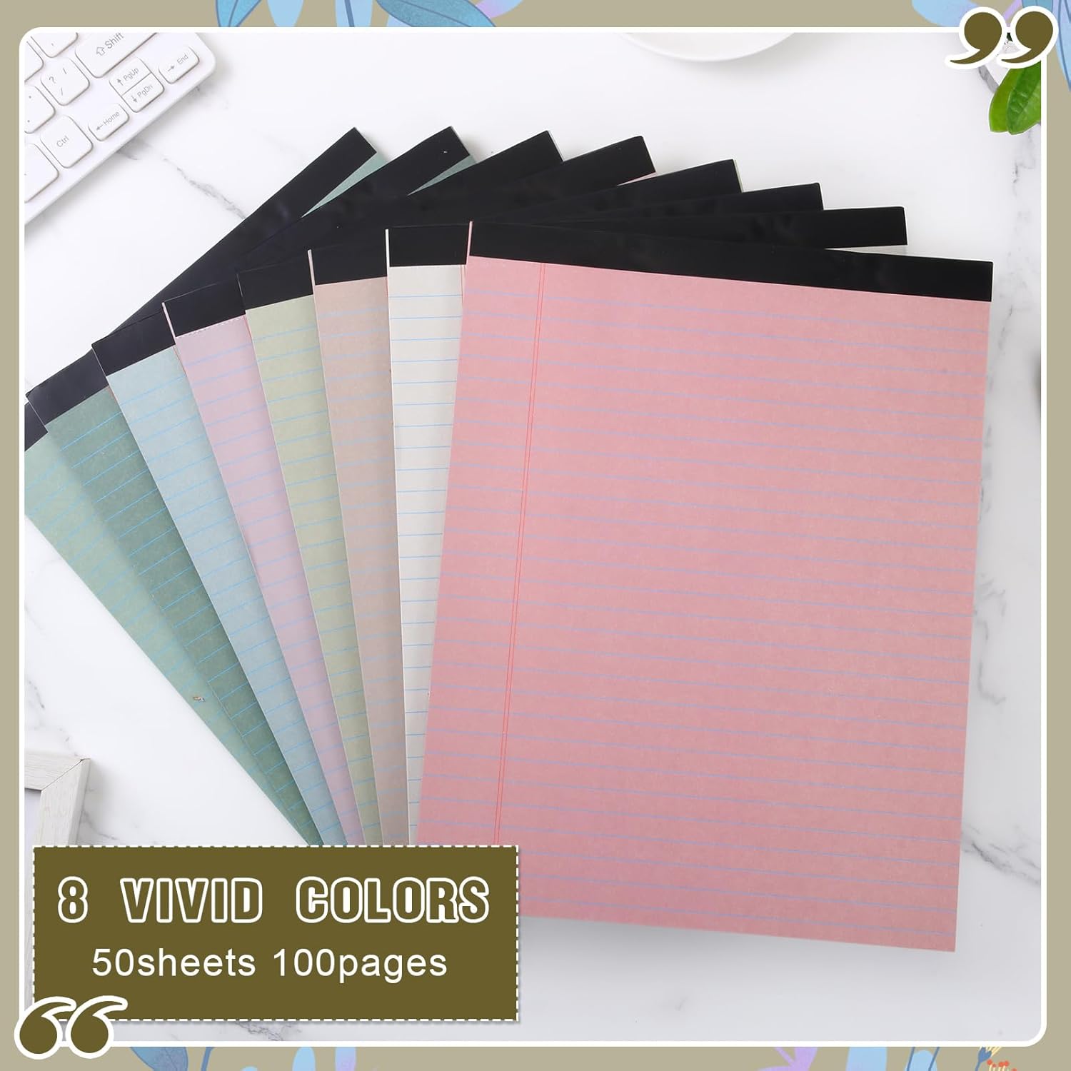 Fuutreo 8 Pcs 8.5'' x 11'' Colored Legal Pad Writing Pads Wide Ruled 50 Sheets Per Notepad Perforated Writing Notepad Office Supplies for School College Office Business (Vivid Colors)