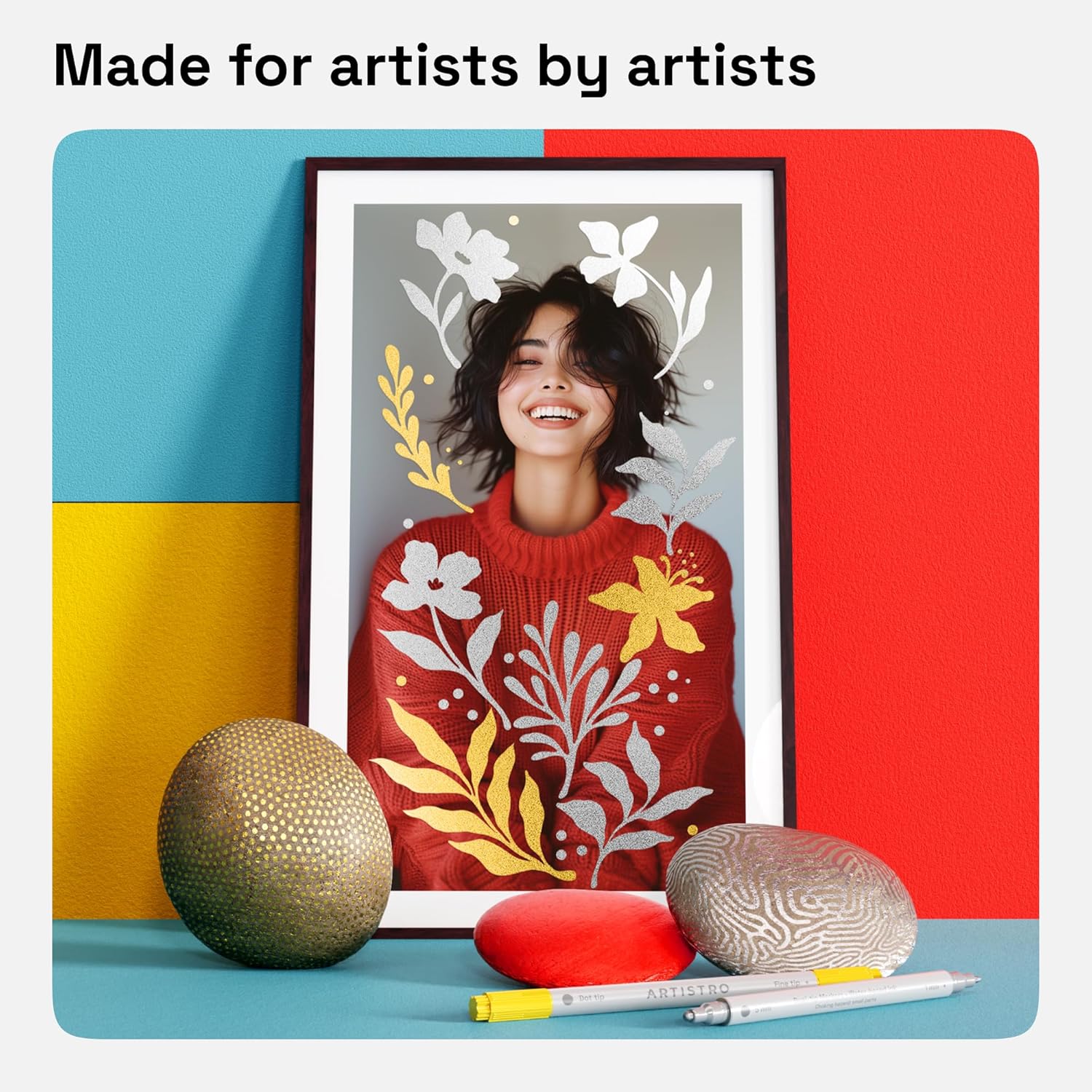 ARTISTRO 2 Silver&Gold Dual-Tip Acrylic Paint Pens - Multisurface Markers for Fabric, Plastic, & More, 5mm Dot + 1mm Fine Tips