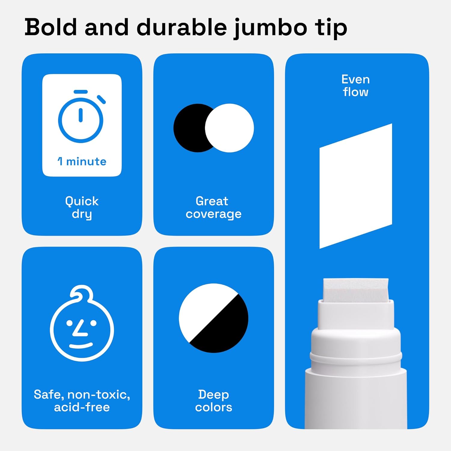 - GREAT FOR DETAILS: Each paint pen is equipped with a 15 mm Jumbo tip for detailing. Plus, the acrylic paint markers donβt flood or jam, so theyβre perfect for adding details to any project, from birthday cards to Christmas gifts!