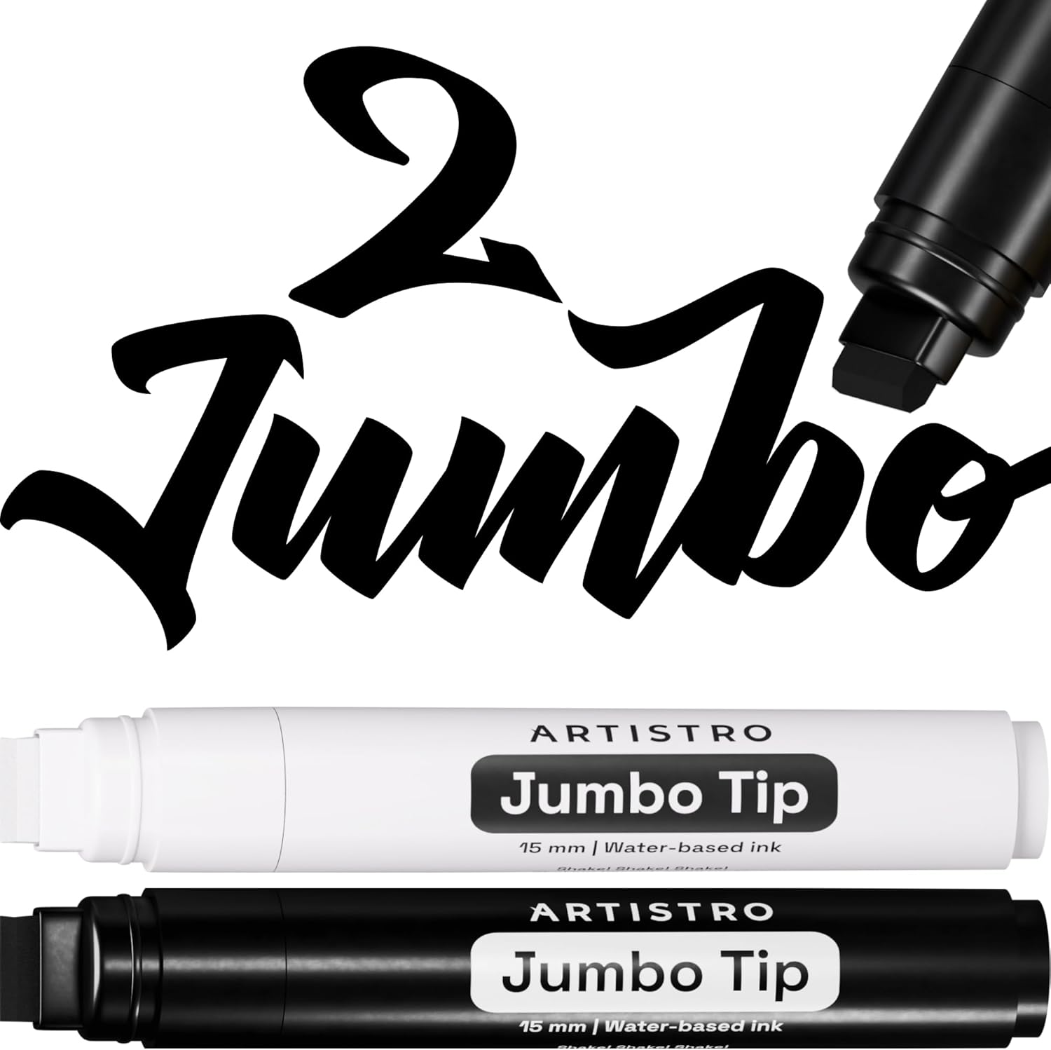 ARTISTRO 2 Black & White Acrylic Paint Markers - 15mm Jumbo-Tip Paint Pens - Perfect for Crafting, Art Projects, & More