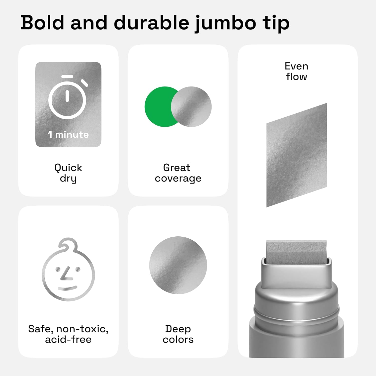 - PREMIUM QUALITY: This Artistro 2-pack of Jumbo Silver acrylic paint pens utilizes vivid, acrylic ink that dries quickly to produce a durable opaque and glossy finish on any surface. Each acrylic paint pen is equipped with Italian ink and a durable Japanese nib.