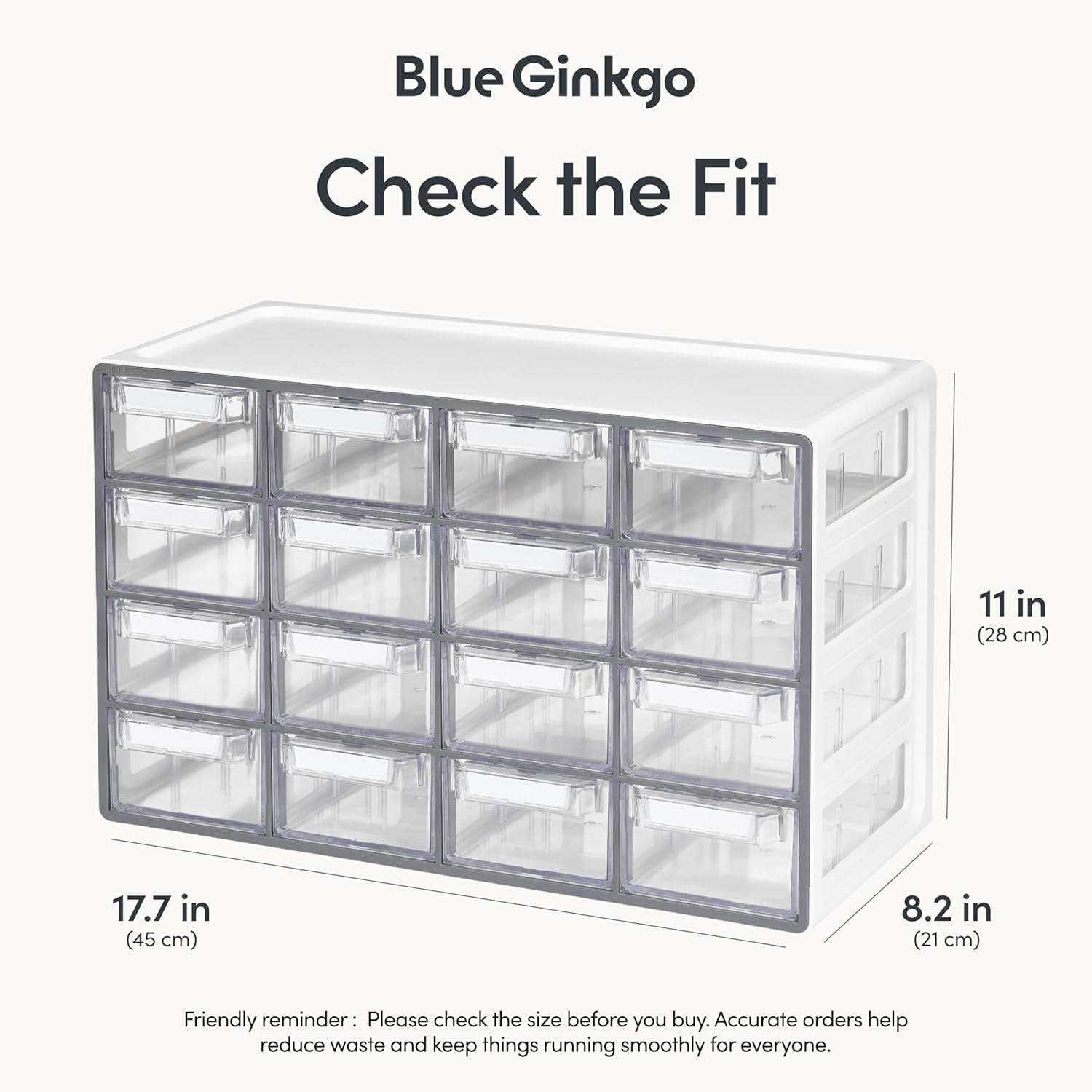 Blue Ginkgo Medium 16-Drawer Cabinet – Stackable Clear Organizer for Hardware, Beads, Plastic Bricks, Office, and Craft Storage (Made in Korea, Gray)
