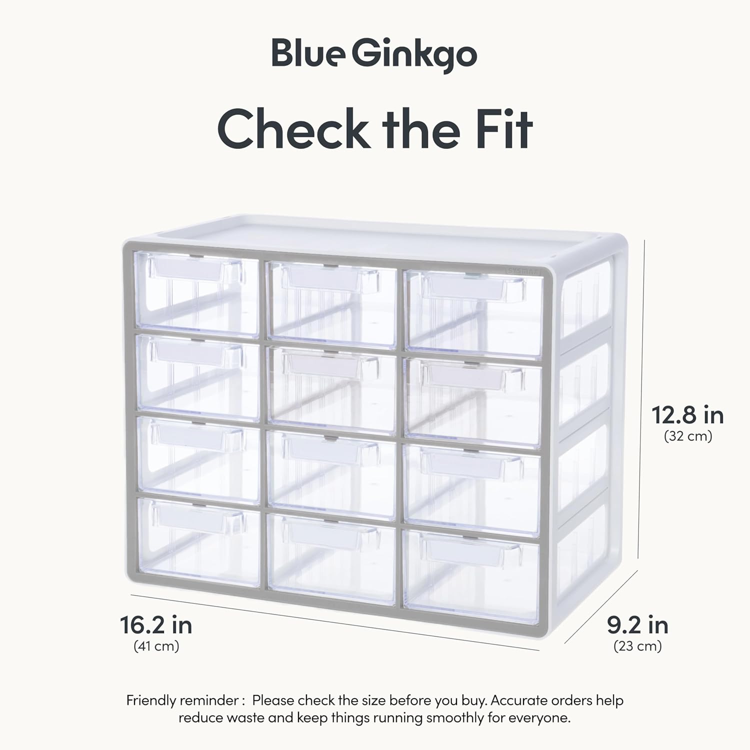 Blue Ginkgo Large 12-Drawer Cabinet – Stackable Clear Organizer for Hardware, Beads, Plastic Bricks, Office, and Craft Storage (Made in Korea, Gray)