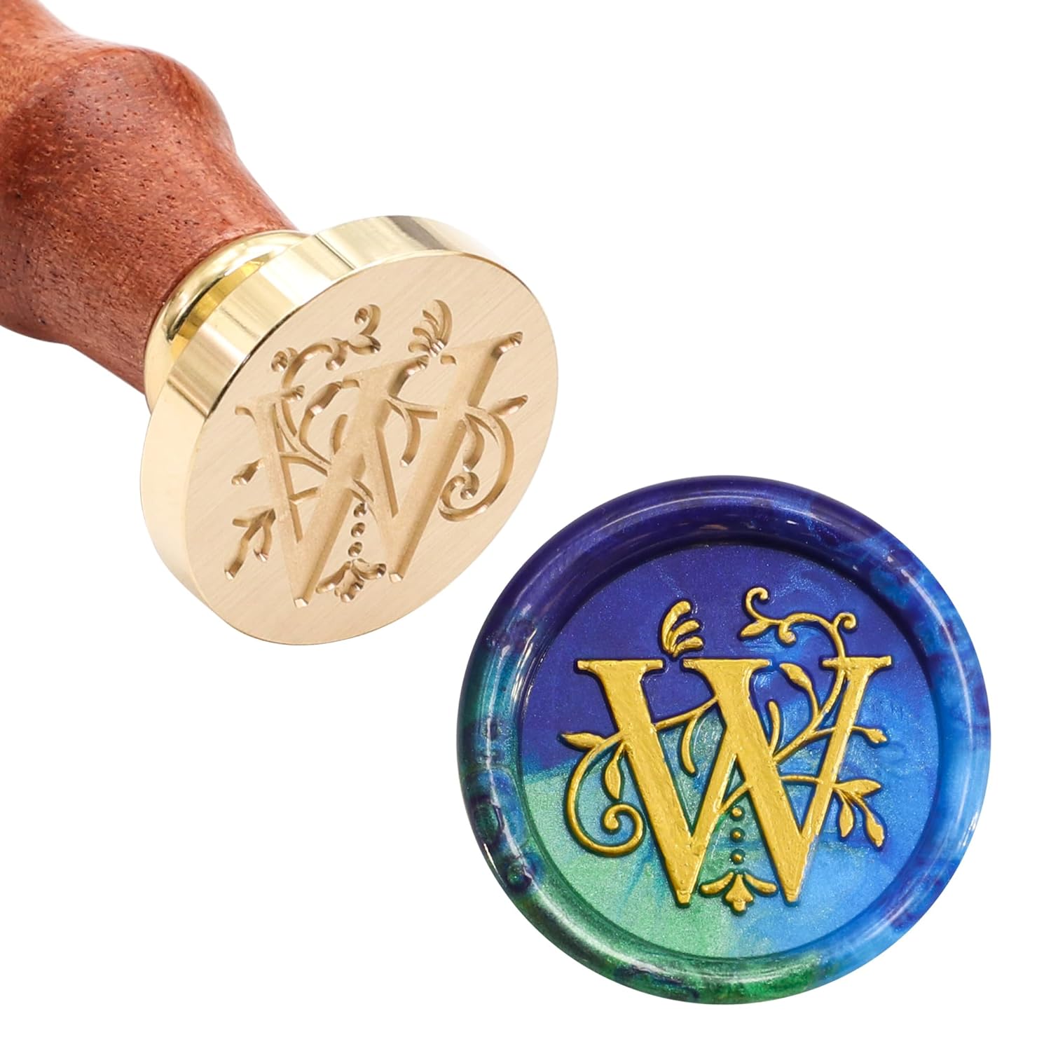 - WAX SEAL STAMP MATERIAL: Made of wooden wax stamp handle and brass seal stamp head, easy to use and clear, the sealing stamp head is smooth and shiny, non-stick. Removable wax stamp head, easy to change and install.