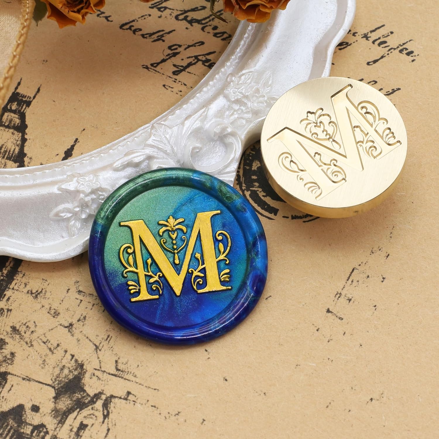- WAX SEAL STAMP MATERIAL: Made of wooden wax stamp handle and brass seal stamp head, easy to use and clear, the sealing stamp head is smooth and shiny, non-stick. Removable wax stamp head, easy to change and install.